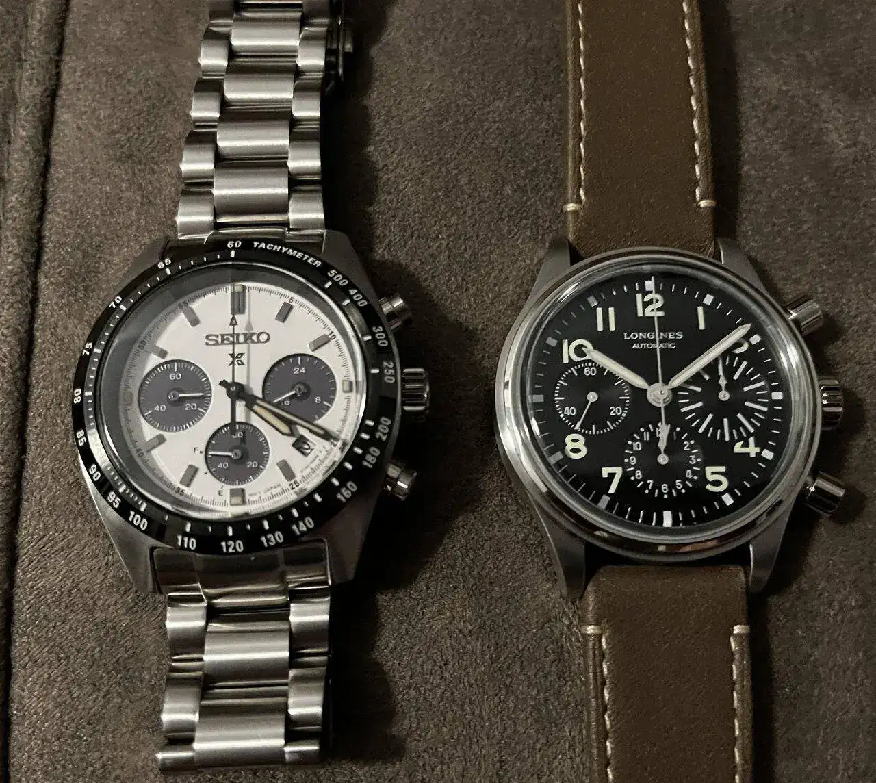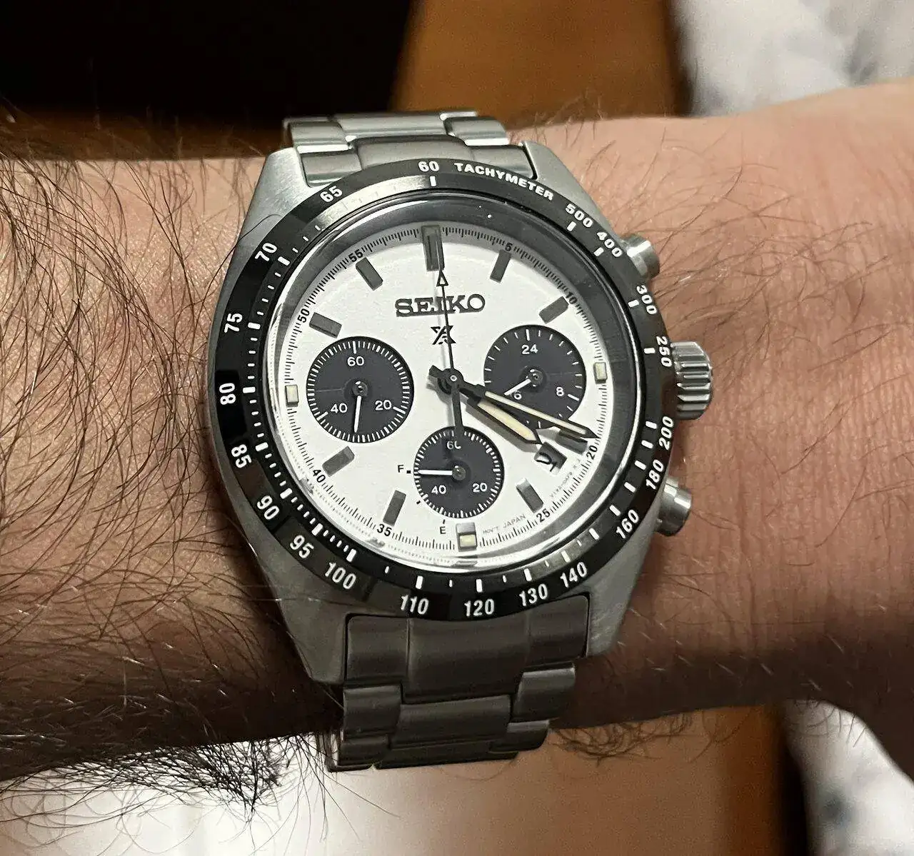 La vuelta de tuerca es la siguiente. El modelo en concreto que me llamaba de Hamilton era de estética panda y en estas semanas mirando relojes tenía también en la mirilla el Seiko, el Seytona como le conocen. Pero claro, comprarme el Hamilton y el Seiko, aunque diferentes entre sí, parecía replicar la misma estética. Pero con el Longines, el combo sí que es muy distinto. Y ahí es donde entra mi bendita esposa que ha decidido regalarme a parte el Seiko. Y nada, ha caído también el SSC813. Una gran opción por ser más contenida en el precio y muy práctico por su mecanismo de carga solar y de cuarzo, además de ser más pequeño.