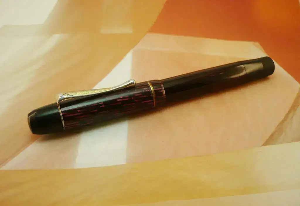 Fabricada en los años 1930, está en muy buen estado de conservación; no hay rayaduras ni roturas. El clip tuvo óxido; está pulido y ha perdido algo del dorado original. Tiene el émbolo de corcho nuevo, y está lubricada (no tiene pérdidas).