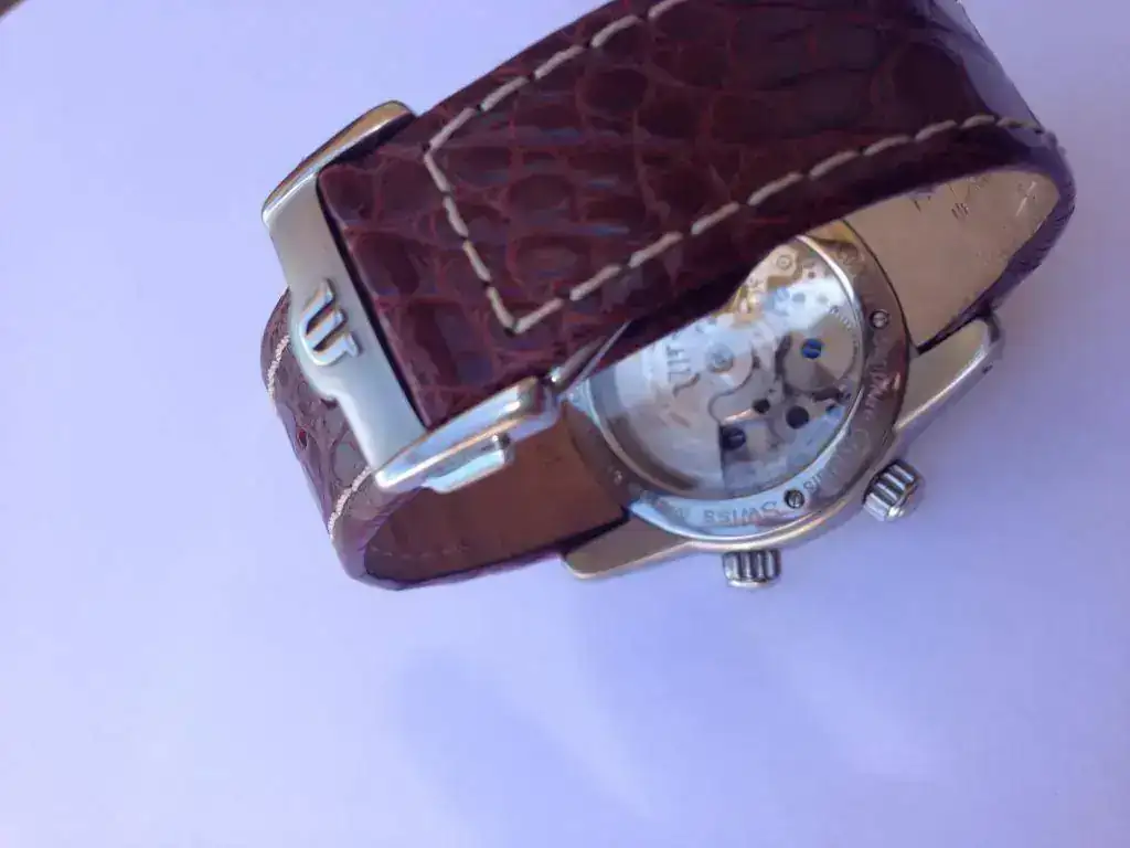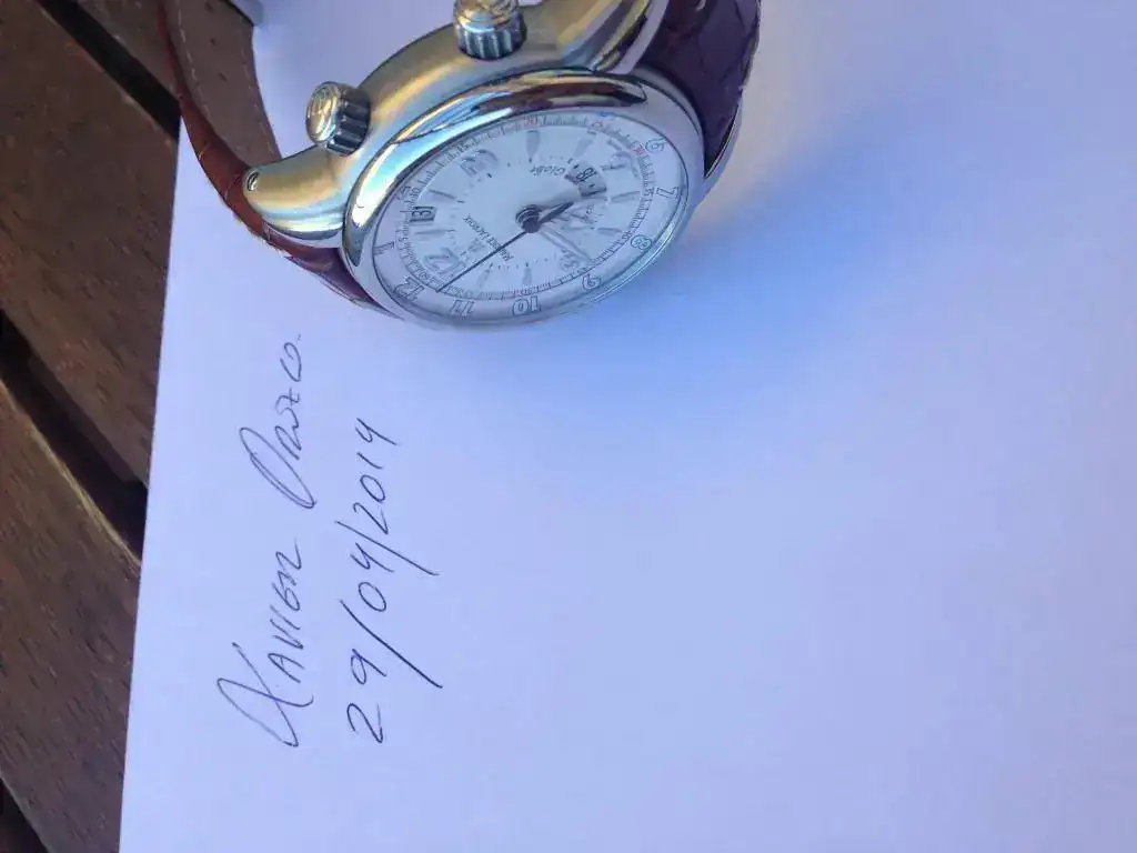 Vendo esta pieza, las líneas son preciosas, terminaciones impecables, dispone de tres usos horarios y despertador mecánico con su propia cuerda, complicación sobre una máquina Valjoux.