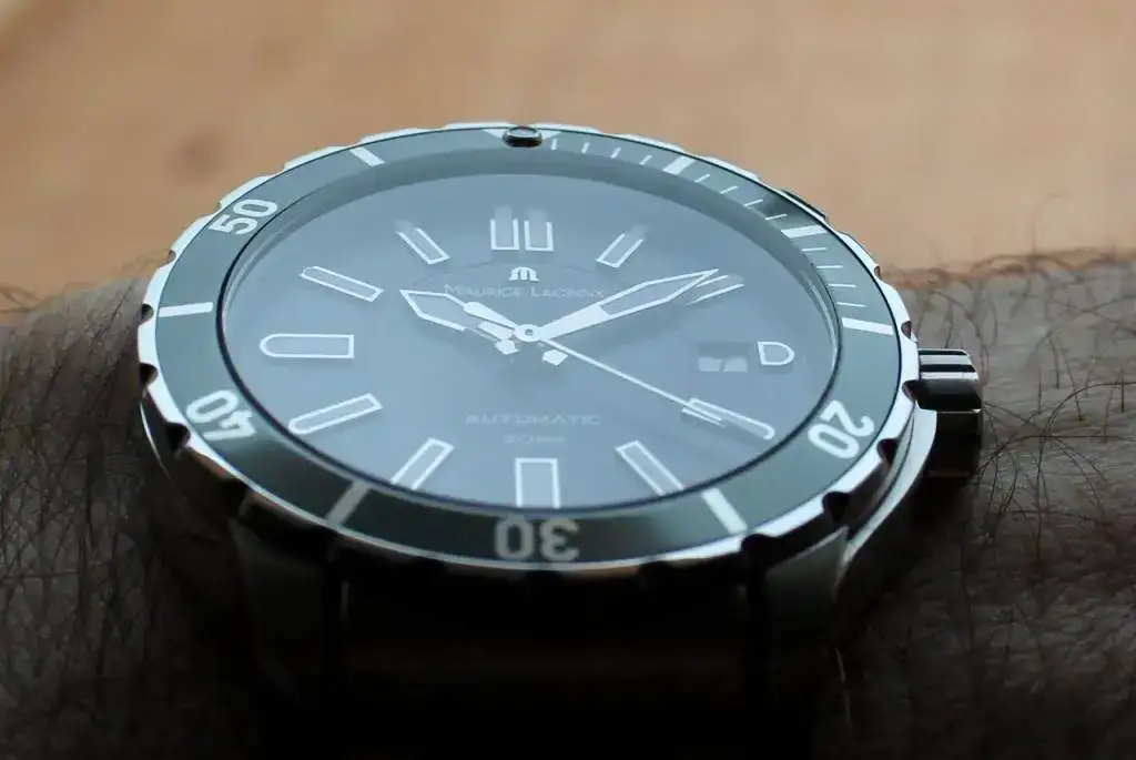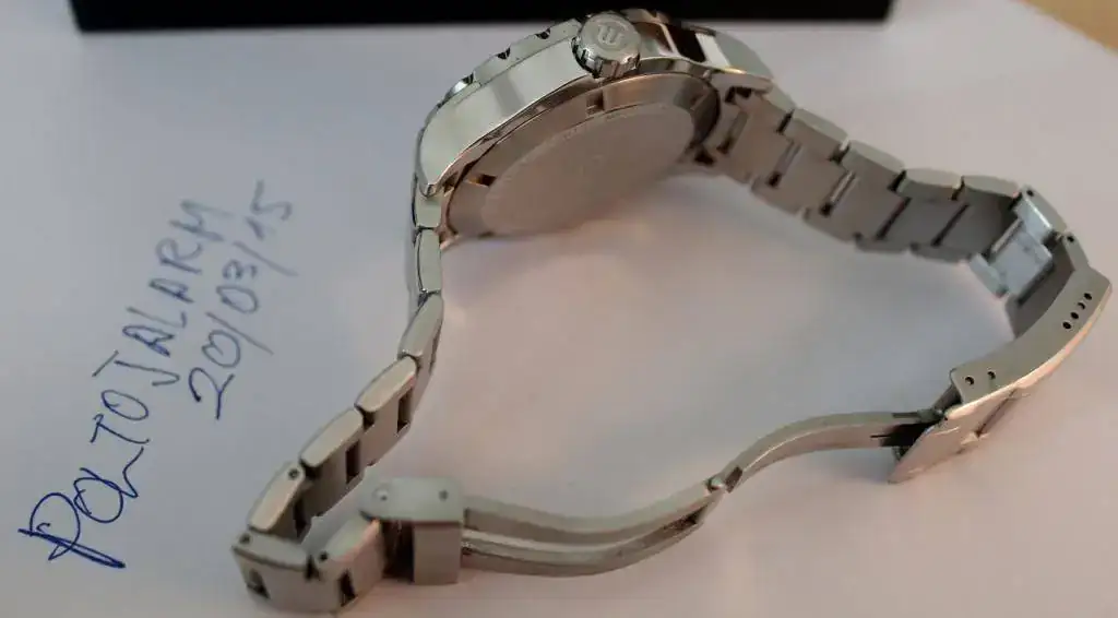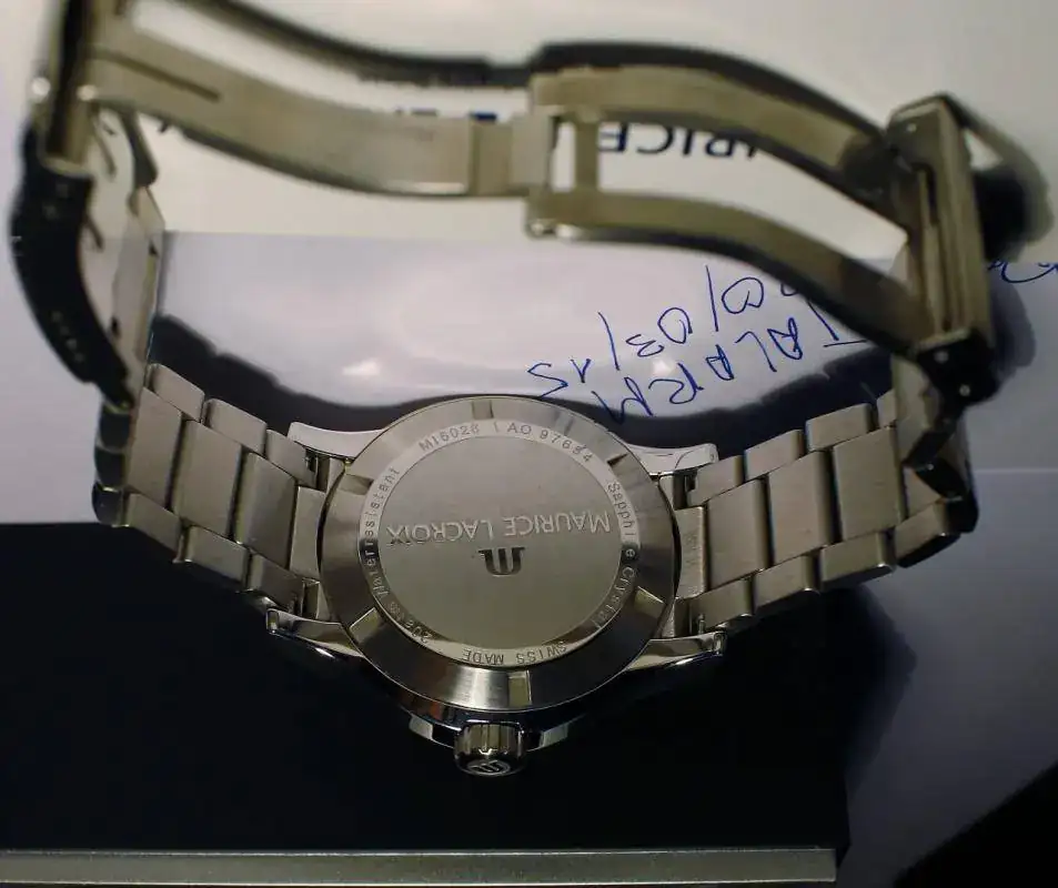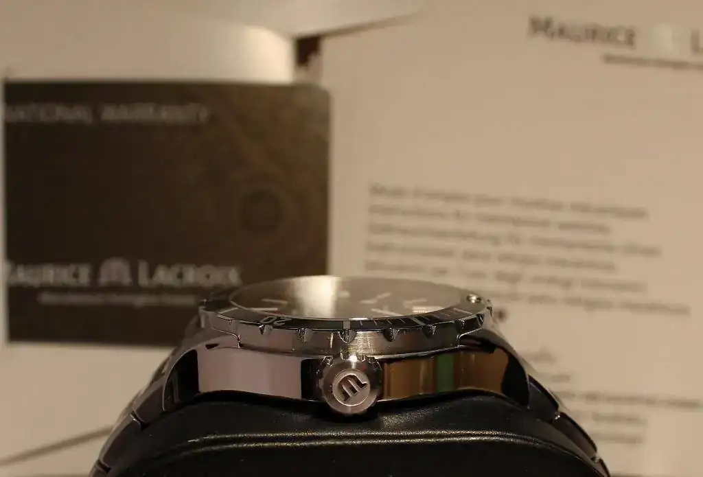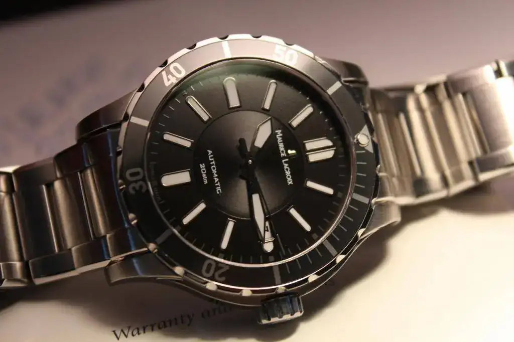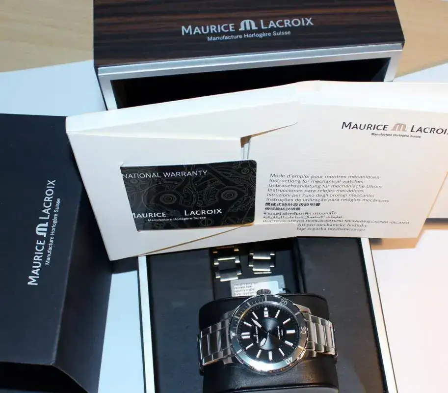 Pongo a la venta este Maurice Lacroix, he sido su único dueño y durante estos últimos ha sido mi DIVER de VESTIR, y está como nuevo. Durante mucho tiempo vestido con plásticos sólo tiene los típicos pelillos en el cierre del brazalete, también se incluyen todos los eslabones y pines. La caja en acero está impoluta, combinando cepillado y pulido, el bisel unidireccional en negro/gris (aunque a veces se le pueda ver tonos o matices verdes¿?) con indices y numero plateados, 120 clicks, con bolita.