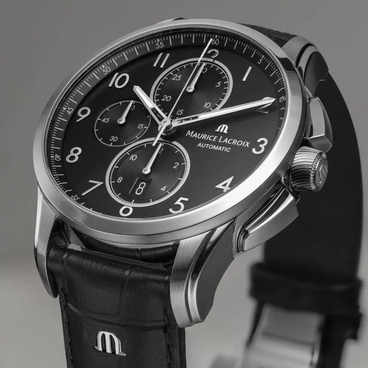 El movimiento es el Maurice Lacroix ML112 automático suizo con 25 joyas, 28.800 vph y una reserva de marcha de 42 horas. El movimiento está chapado en rodio y cuenta con decoración de Perlage y Cotes de Geneve. El rotor está bronceado con Cotes de Geneve. Las funciones son: horas y minutos, segundos pequeños a las 9 en punto. Cita a las 6 en punto. Cronógrafo: segundos con la mano central, contador de 30 minutos a las 12 en punto y contador de 12 horas a las 6 en punto.