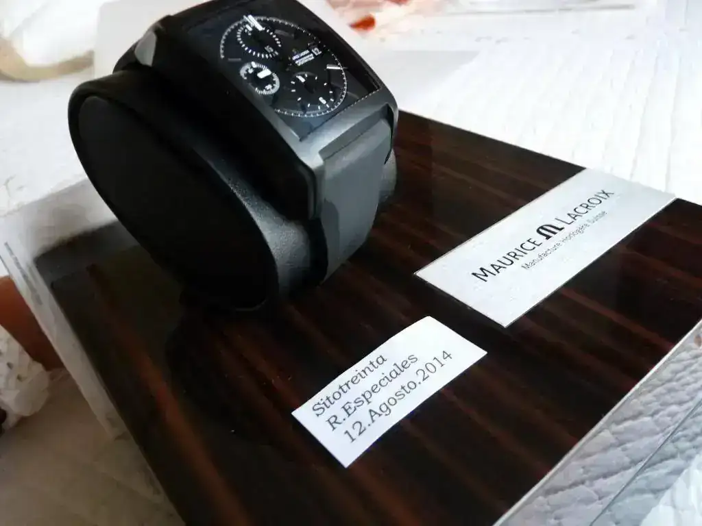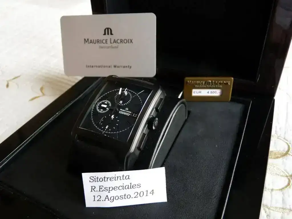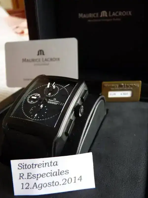 Propongo para Cambio este magnifico Maurice Lacroix, nuevo a estrenar con dos años de garantia oficial y toda su dotacion,(cajas, folletos, manual de instrucciones, gamuza, tarjeta de garantia debidamente sellada, etc.),valoro el reloj en 3.300 € y estoy abierto a cualquier reloj que me guste, sea de precio inferior o algo superior. Creo que la palabra que mejor define a este reloj es “Espectacular” en todos los sentidos, un reloj que no deja indiferente a nadie. He añadido fotos quitadas de la Web, para que se aprecie su autentica belleza.