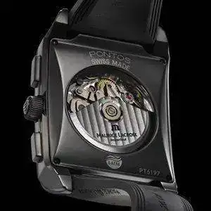 Masculino, deportivo, monocromo, alta tecnología. El Pontos Chronographe Rectangulaire Full Black integra en su eminentemente atlética caja un innovador revestimiento cerámico que incrementa su robustez y lo sitúa ciertamente en el círculo cerrado de los instrumentos tecnológicos. Negro de pies a cabeza, este cronógrafo no permite la menor digresión cromática. Así la esfera no concede más que unos puntos de Superluminova blanca encima de la arquitectura tono sobre tono de sus estratos.