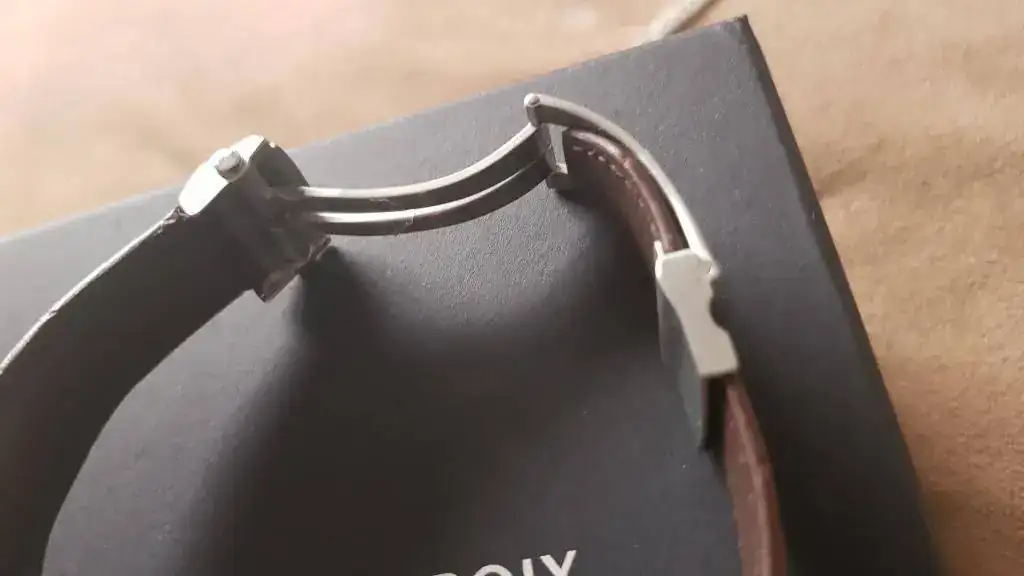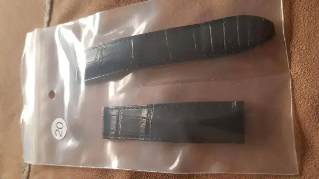 En las fotos sale con una correa marrón (de muy buena calidad) que en mi opinión le queda bastante mejor que la negra original que por supuesto envío también.