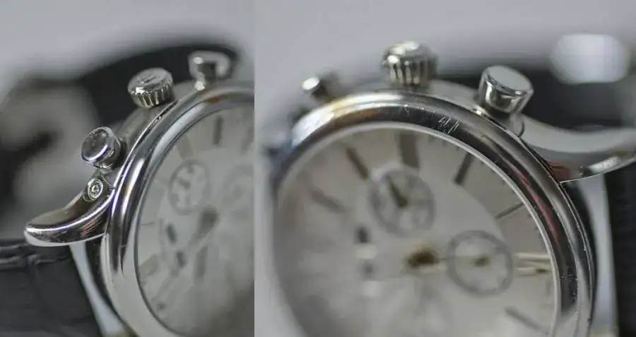 Al hacer fotos "complementarias" con objetivo macro me di cuenta que el estado estetico es "muy usado" de una distancia normal no me di cuenta de las desperfecciones y no quiero que el comprador se lleve un disgusto,aunque el precio que le he puesto creo que es mas que correcto y creo que se puede disfrutar bastante con este reloj!