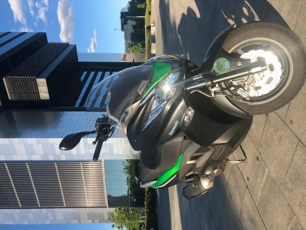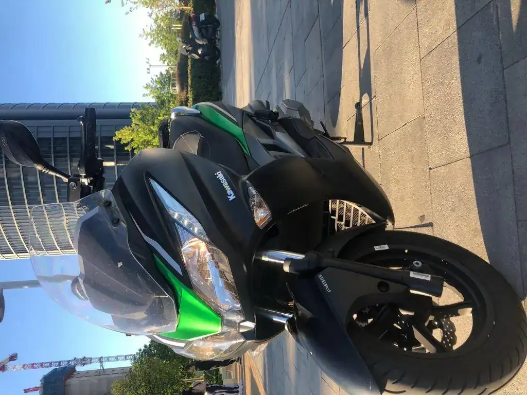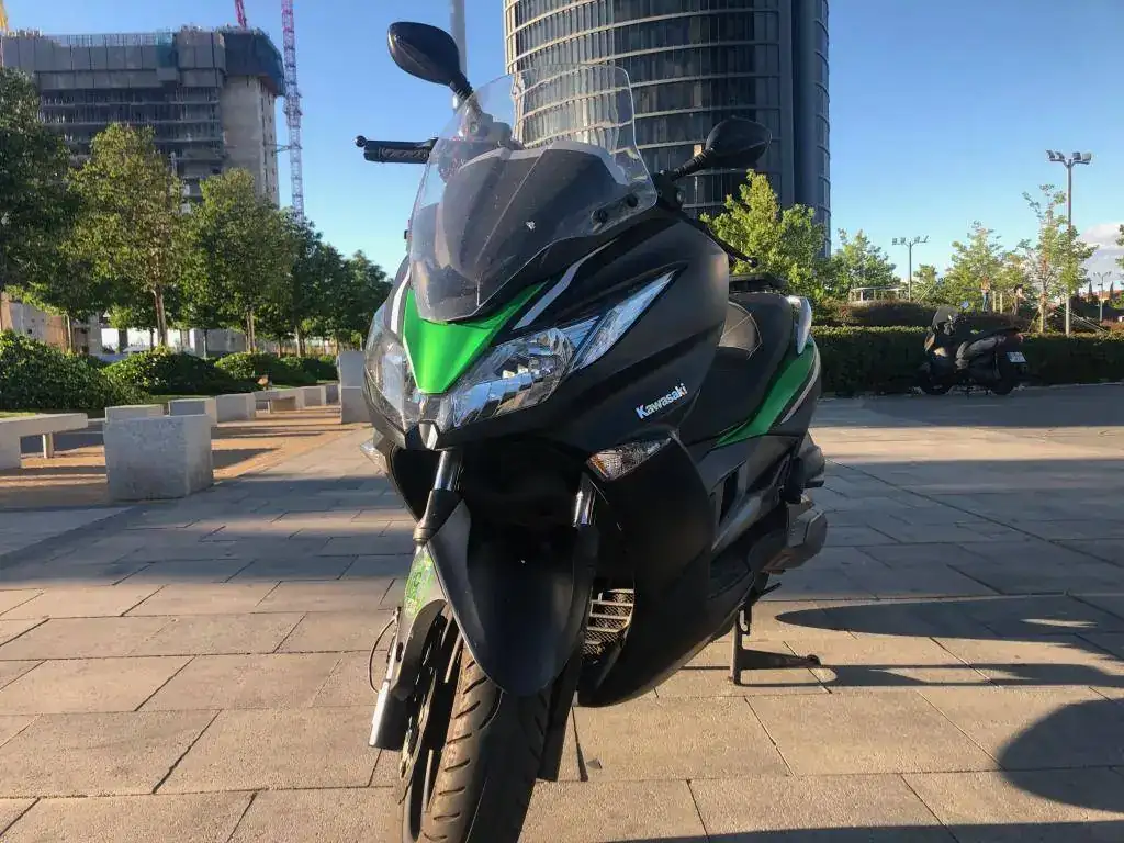 Pues por total ausencia de uso -sola muevo en el garaje de forma periódica para que no esté parada- vendo maxiscooter Kawasaki J 300 con ABS en perfecto estado. Es la versión Special Edition con color negro mate y verde y está impoluta.