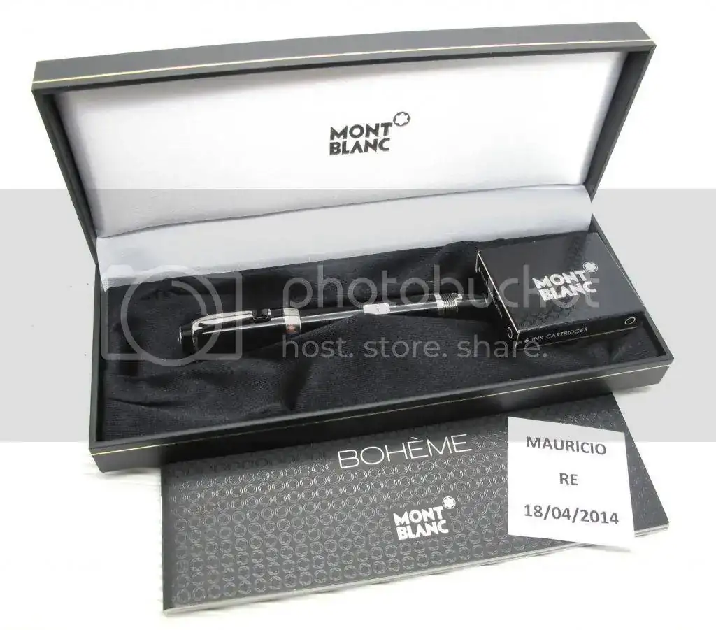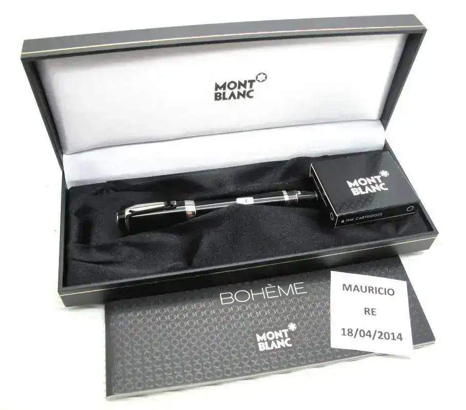 Estilográfica MB Bohème a estrenar, acabado Platino, piedra negra, punto F y plumín retráctil. Jamás entintada.
