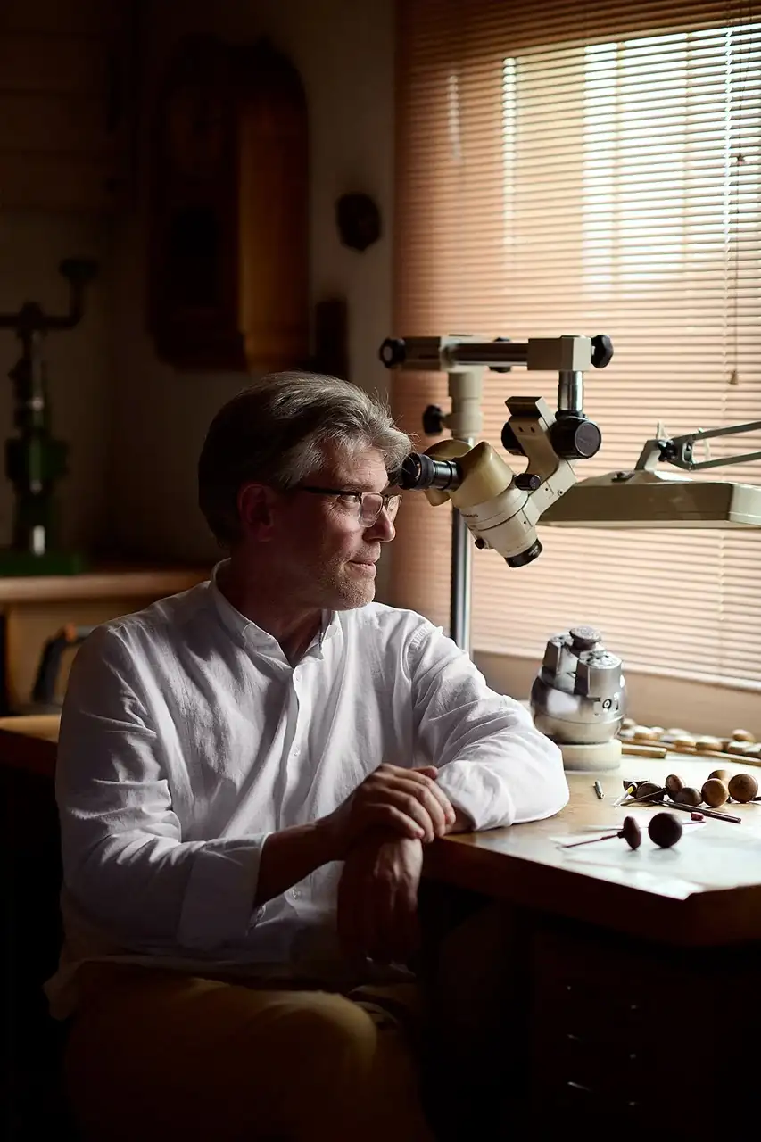 Eddy Jaquet nació en 1965 en un pequeño pueblo situado a las afueras de Neuchâtel. Desde que se graduó en la École d’Arts Appliqués de La Chaux-de-Fonds donde aprendió el oficio, Jaquet se dedicó directamente a ejercer la vocación de grabador por la que se inclinaba desde niño y, desde entonces, ha ido construyendo su trayectoria en el oficio desde 1987 hasta hoy. Desde 1994 goza de una completa independencia profesional, lo que le ha permitido crear algunas de las obras de arte más exquisitas que han decorado esferas de relojes.