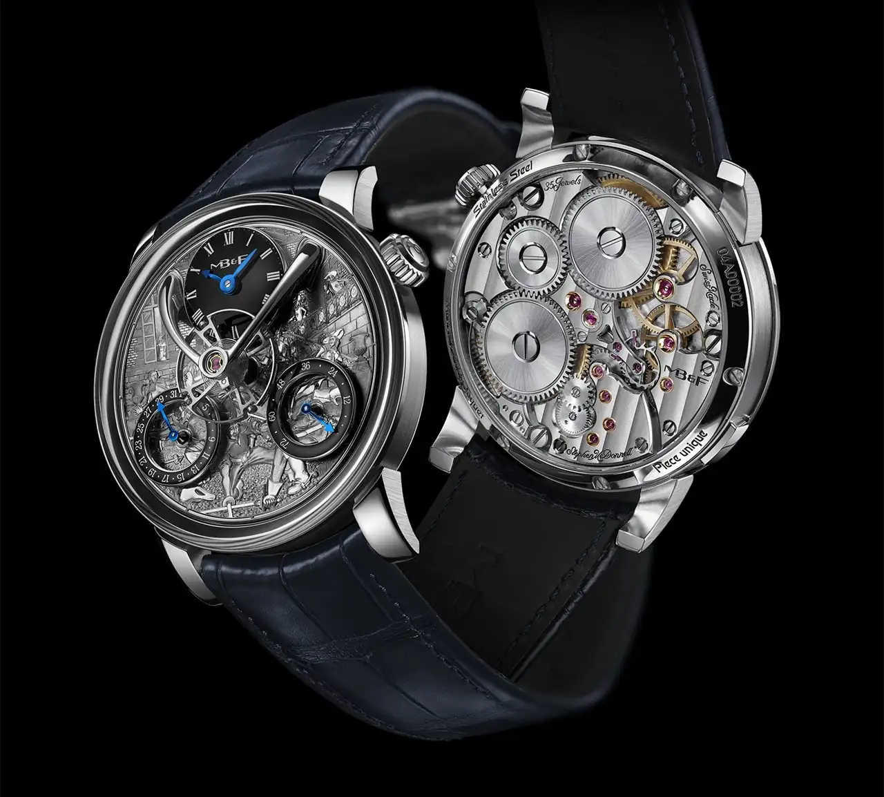 Ensamblado del movimiento: Didier Dumas, Georges Veisy, Anne Guiter, Emmanuel Maitre, Henri Porteboeuf, Mathieu Lecoultre, Amandine Bascoul y Loïc Robert-Nicoud / MB&F