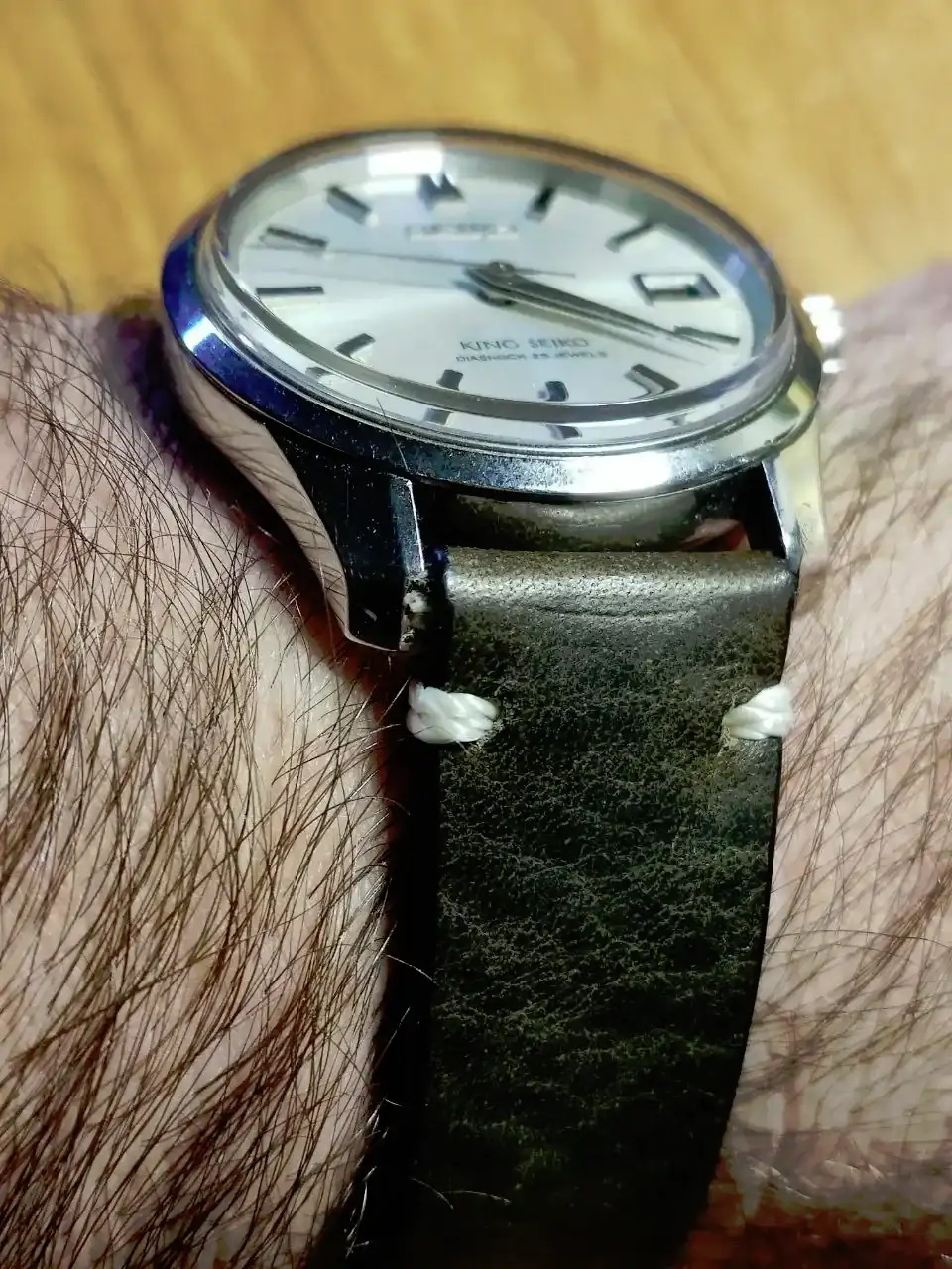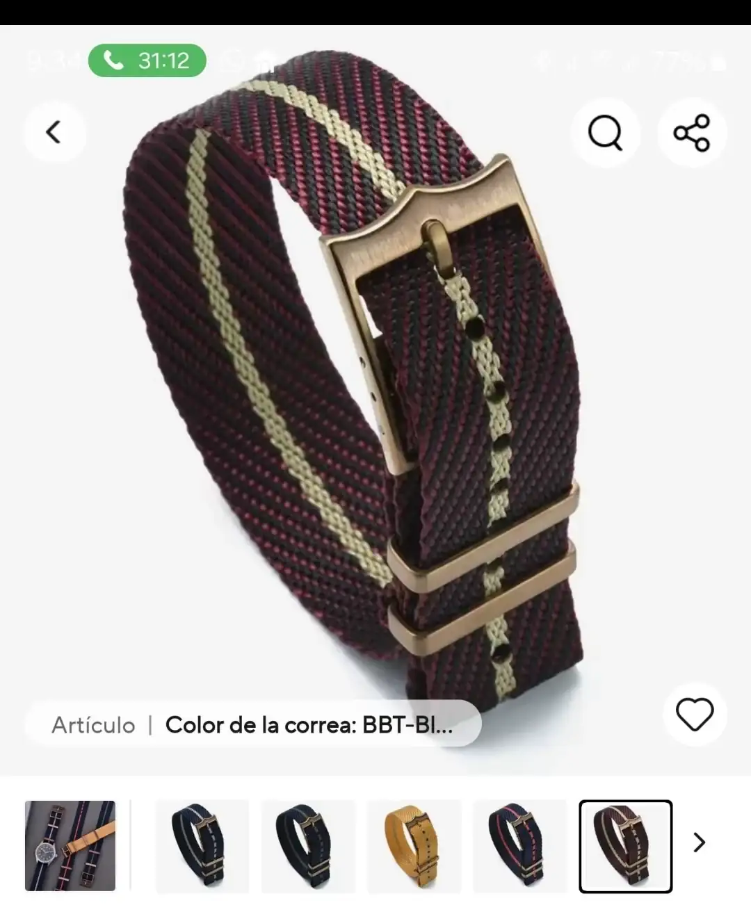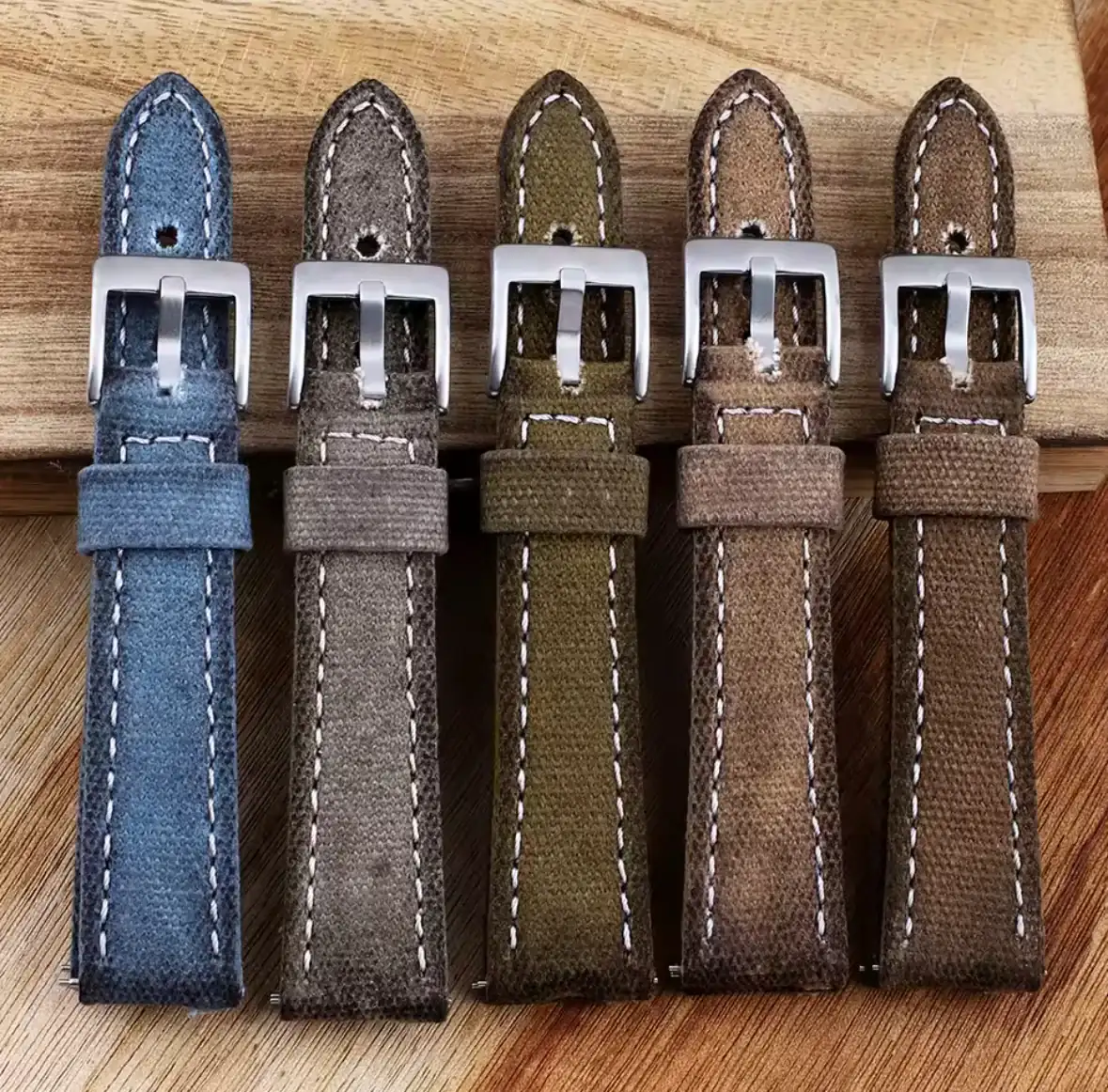 ¿Textil o piel?Buenos días, yo le pondría una correa color burdeos o rojo, vamos para darle alegría a la caja