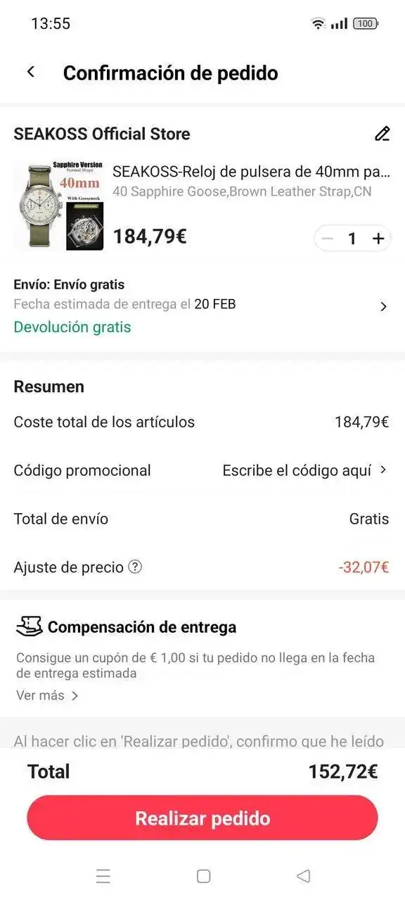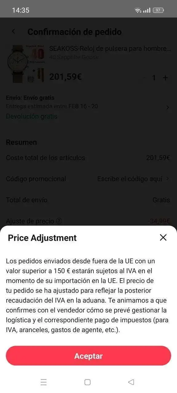 Al hacer la simulación de compra me sale a pagar al momento unos 153€(NO 185€),también hay un apartado qué pone Ajuste de Precio de unos 33€. Parece que son tasas.