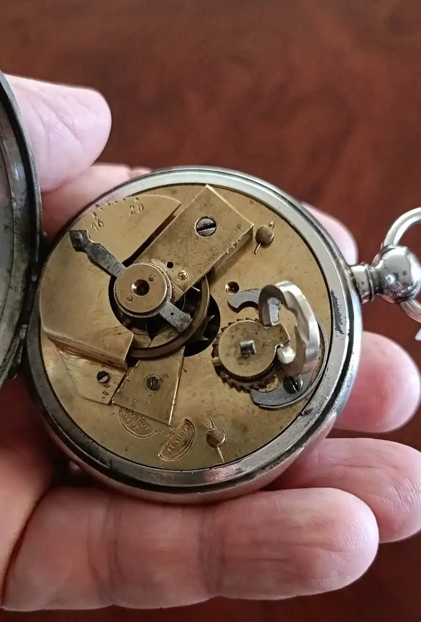 Movimiento redondo de media platina, de latón plateado. Remonte y puesta en hora por la corona. Escape de áncora con palas de diamante, y 15 piedras en total. Volante equilibrado bimetal que no está partido, aunque tiene dos ranuras que lo simulan, por lo tanto no está compensado por variaciones de temperatura. El muelle espiral es plano.