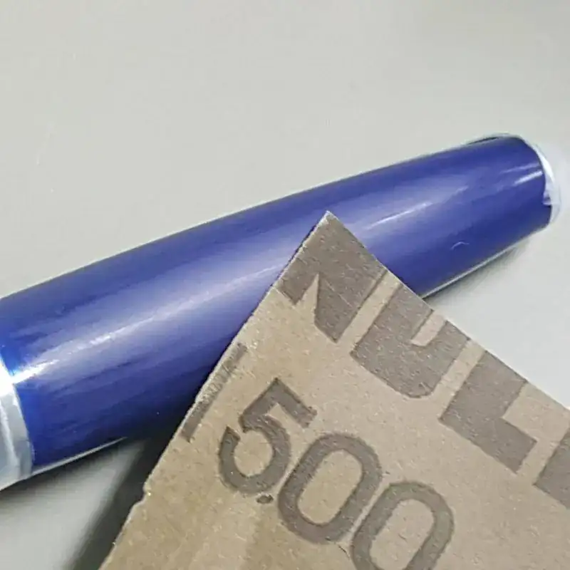 Yo la dejaría como está. La lija es mejor que no la uses, porque luego habria que pulir igual y sin másquinas es imposible que quede bien. Mejor con un trapo y pasta para pulir plástico, pero no frotes la pasta en las zonas metálicas ni en el plumín, o desapareceráel baño de rodio y quedará feo.