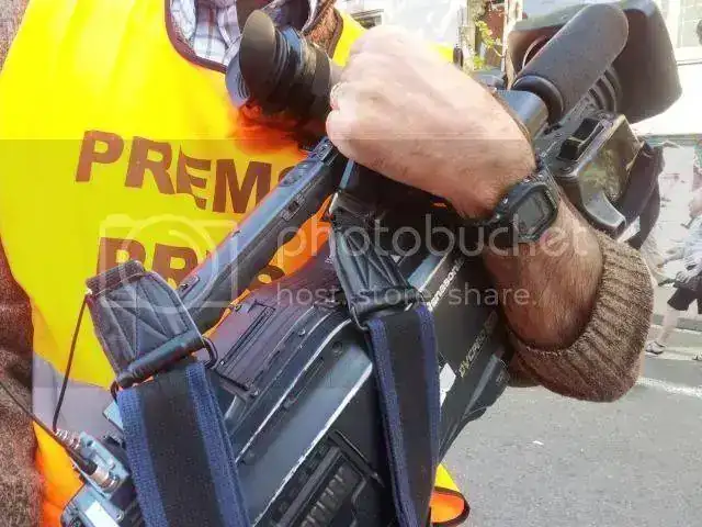 Con un Casio GW-M5600, cubriendo una manifestación en Barcelona