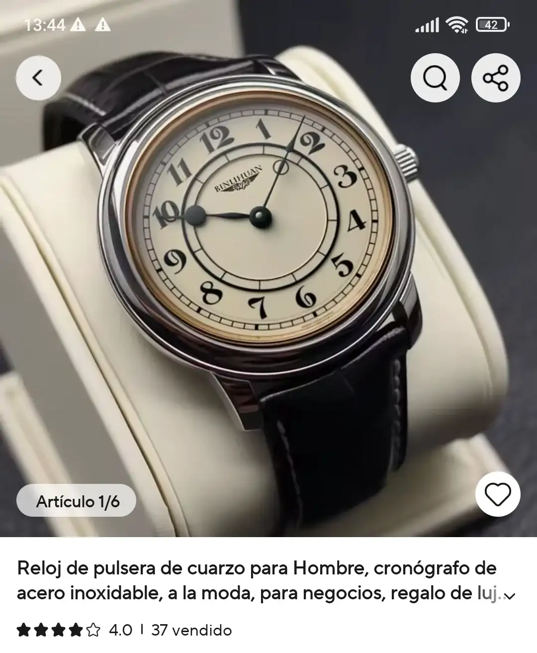 Quien no tiene un reloj de gusto clásico es por que no quiere. En una oferta lo he comprado muy barato ( < 4 € ). La correa es aceptable, pero conociendome seguro que le busco otra más colorida y clásica que costará más que el reloj. Más que aceptable y tapa grabada a láser. Lo he comprado por la estética de su dial y sus manecillas. Además sin lista de espera, con stock sobrado.