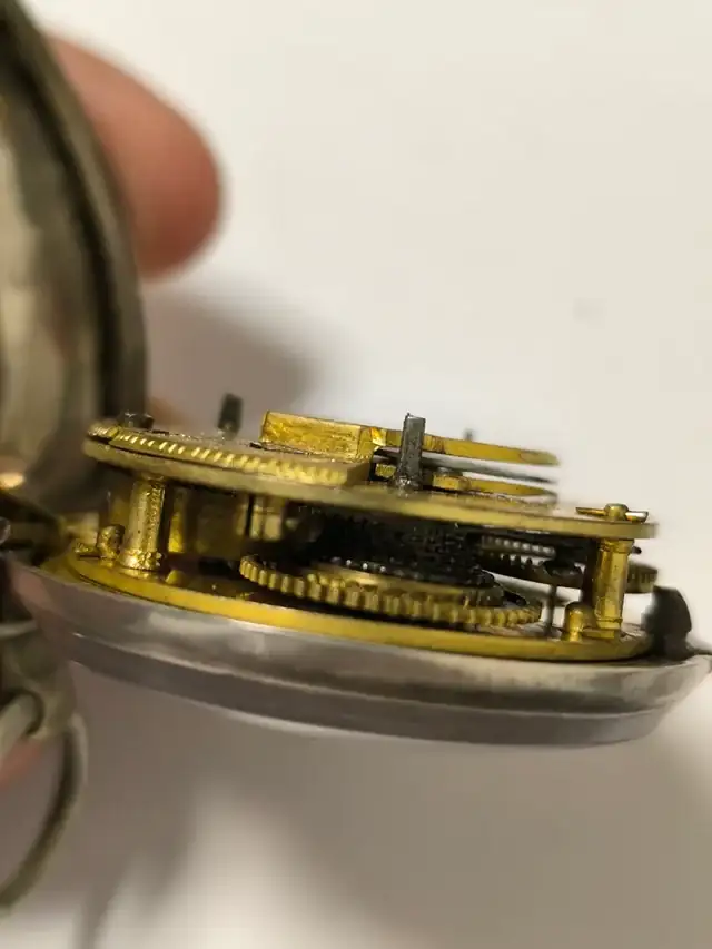 Que gusto da leerte Miquel … un disfrute totalHola Alberto y bienvenido al foro. Siempre es mejor preguntar por un reloj, enseñando muchas imágenes y en el sitio adecuado, en este caso el subforo de relojes de bolsillo. El reloj es auténtico, no te preocupes por eso. Las agujas son un reemplazo y en la caja interior debería haber algún sello identificativo, al igual que debajo del papel que cubre la caja exterior, haz fotos de ellos. El tornillo grande que se ve en la pletina no es de la época, sino una reparación de alguno de los pilares. Referente al nombre que aparece grabado en la pletina C. Davison, has de saber que la mayoría no son el fabricante, sino vendedores o joyeros que estampaban su nombre. En este caso hay un tal Charles Davison (1798-1815) pero afincado en Escocia. La fecha coincide plenamente con las fechas en que se debió construir tu reloj y muchos vendedores firmaban "Londres" para dar más cache a su producto (no hay ningún relojero listado con ese apellido en Londres sobre estas fechas). El reloj en si es un verge fusee (catalino) lleva un regulador del tipo Tompión (mejor no lo toques) y es en esencia un reloj muy modesto y de calidad justita... Veo que lleva un cristal del tipo "ojo de buey" que se utilizaba en la época para "aparentar" más reloj. Este tipo de reloj común era difícil de vender, ya que iba destinado a un cliente con no demasiados ingresos y debido a las guerras napoleónicas, los relojes fueron uno de los bienes de consumo que se gravaron con muchos impuestos. Debes saber que para darle cuerda debes hacerlo con una llave y siempre en sentido anti-horario de las agujas del reloj. Lo dicho, con fotos de todos los sellos, te podremos dar más información. Su valor como reloj y objeto histórico, intrínsecamente es bajo, pero es un buen pedacito de historia y puedes disfrutar de el como eso (yo lo hago con muchos de mis relojes).