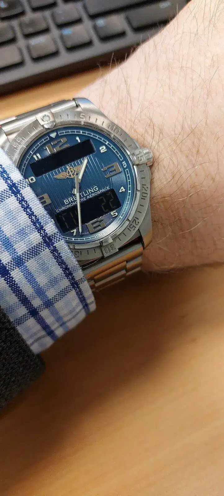 El que sí tengo es el Aerospace de Breitling, y es un relojazo que recomiendo siempre. Aún no lo hice en este hilo porque no sé en qué presupuesto se mueve el compañero que nos hace la pregunta, y reconozco que el Aerospace barato no es. Pero es un gran reloj de cuarzo y con una personalidad arrolladora.