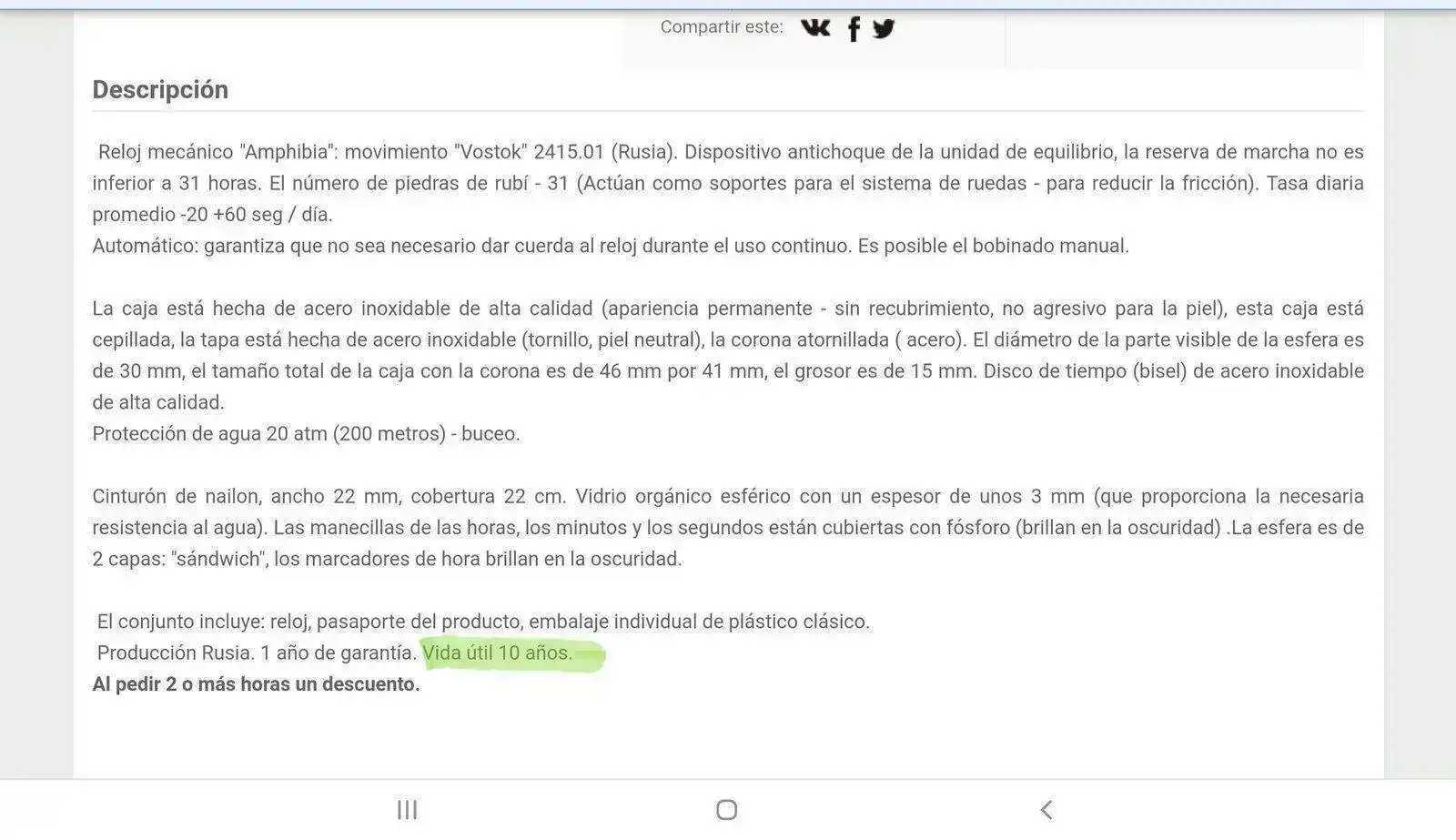La verdad es que desde que tengo uso de razón usando estos relojes, desde que compré el primero, ya ni me acuerdo, ponían lo mismo, servicio a los 10 años.