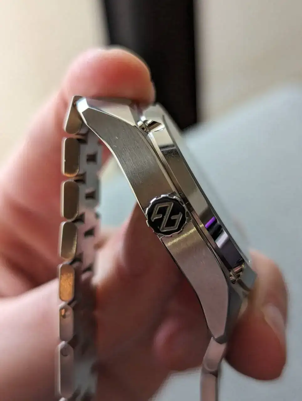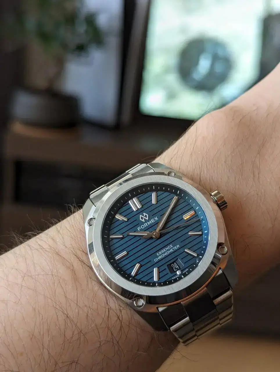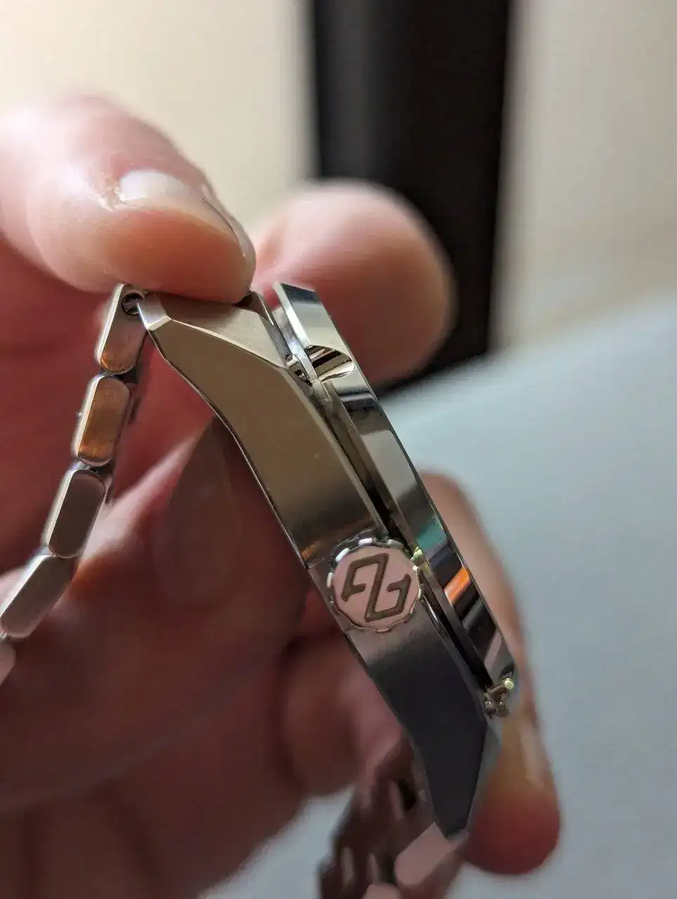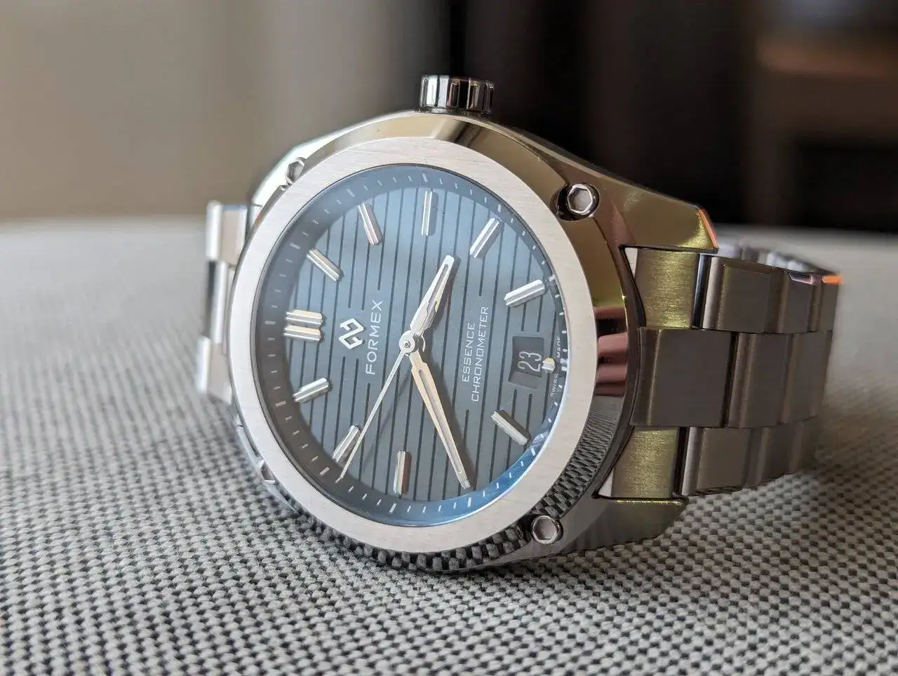 La caja tiene un gran acabado y un diseño caracteristico. No soy muy fan de tornillos o parecidos en las cajas pero tampoco me desagrada. Cuando miras el reloj frontalmente es realmente bonito. El bisel pulido y cepillado mola mucho y aun mas su esfera. Creo que es la primera esfera que veo de este estilo. Hasta ahora vi acabados mate, acabados rayos de sol, texturizadas pero con grabados de este estilo no, me gusta el caracter que le da. Los marcadores aplicados y agujas, tambien se ven de buena calidad. La fecha esta en color negro, se nota pero queda disimulada.