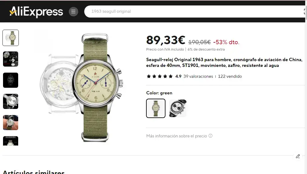 Pues sí, me han engañado en Alí. Pedí un "supuestamente Seagull 1963" concretamente éste