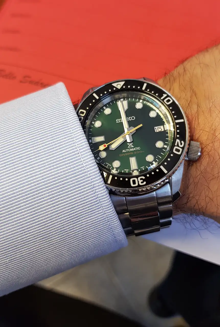 Lo he visto en vivo (no en ese color). Los pros: el diseño general es muy bueno, me gusta el acabado de los últimos biseles (me gusta muy poco el cerámico del MM 300m) las agujas, el nuevo brazalete con eslabones más estrechos. Ya he dicho que no lo he visto en ese color, pero el (más o menos) soleil que usa Seiko en esos acabados sí y me gusta.