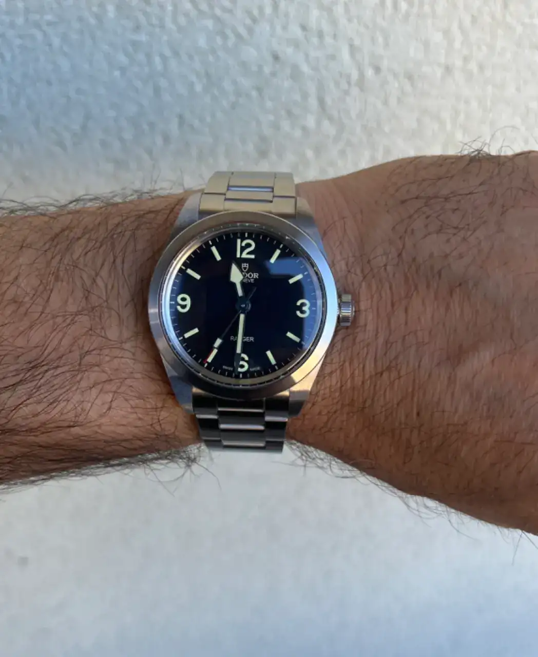 El elegido fue el Ranger que tuve la ocasión de comprar en el FCV,quedar con el estupendo forero,intercambiar opiniones, compartir un café,probármelo y caer en la tentación.Un reloj magnífico,discreto,con una legibilidad máxima,sin fechador y con su cierre T-Fit,que es una pasada,un reloj,que con sus 39 y su L2L de 47 se me hacen las medidas perfectas y del cual estoy tremendamente satisfecho.