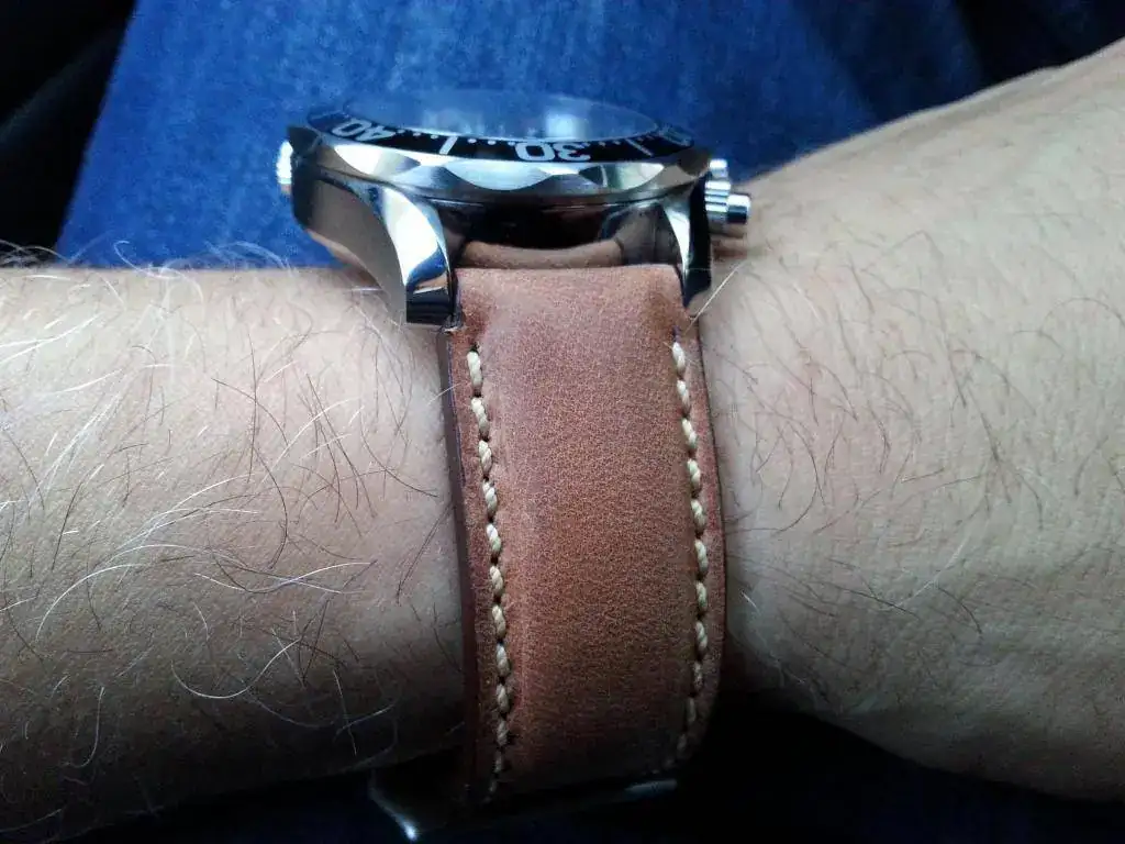 Aquí os enseño mi primera correa artesanal, para el strela. A mi me encanta, perdonas las malas fotos del móvil. Gracias a C&B straps por el trabajo.