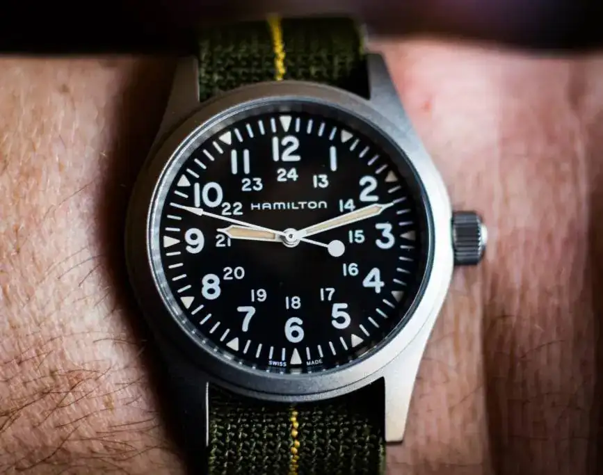 Y ya para acabar, vamos a bajar todavía más. Un Hamilton Khaki Mechanical, PVP 625 €. En ese te pueden hacer sin pedirlo, un 20 %