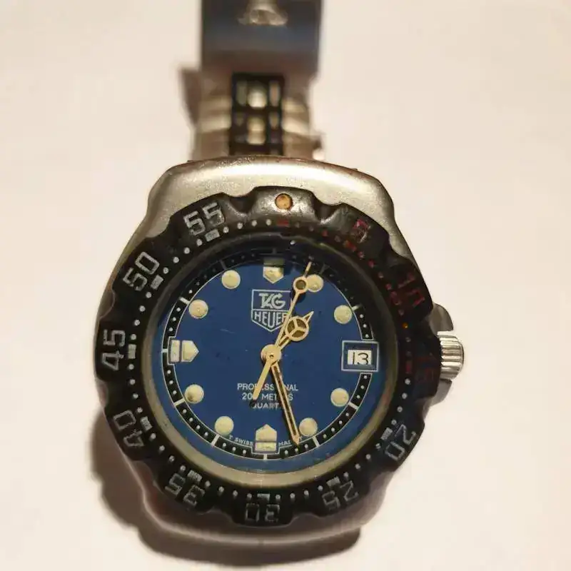 El más antiguo que conservo es este Tag Heuer Formula 1. Es de la primera edición tras la adquisición de Heuer por TAG. Se que para muchos Heuer no es Heuer con el prefijo TAG, pero fue un regalo de reyes en el año 89. Por aquel entonces tenía 15 años. Sigue andando como el primer día, aunque el armis no es el original, que era de goma originalmente y bastante feo para mi gusto. Se cambió por desgaste del original.