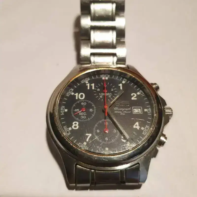 Tiempo después, en 2004, desde Argentina llegaba este Orient. Mantengo caja original y garantía sellada a mi nombre en una tienda de Mendoza (Argentina). Fue un regalo de mi padre que aquel año hizo un viaje a visitar a la familia. Necesita un engrasado del pulsador inferior, pero funcionalmente está perfecto, aunque se le nota el paso de los años, pues también le di mucho uso.