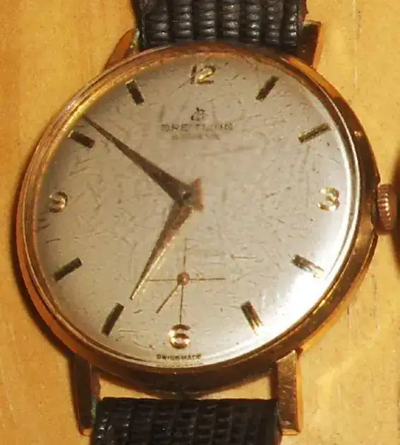 Un Breitling que según indague en internet podría ser un Premier de los años 50, tal vez con oro rosa. Se encuentra en excelente estado, anda al dar cuerda. Quisiera saber mas detalles de parte de algún experto si es posible. Detrás se nota la marca Breitling con su logo y el numero 1353.