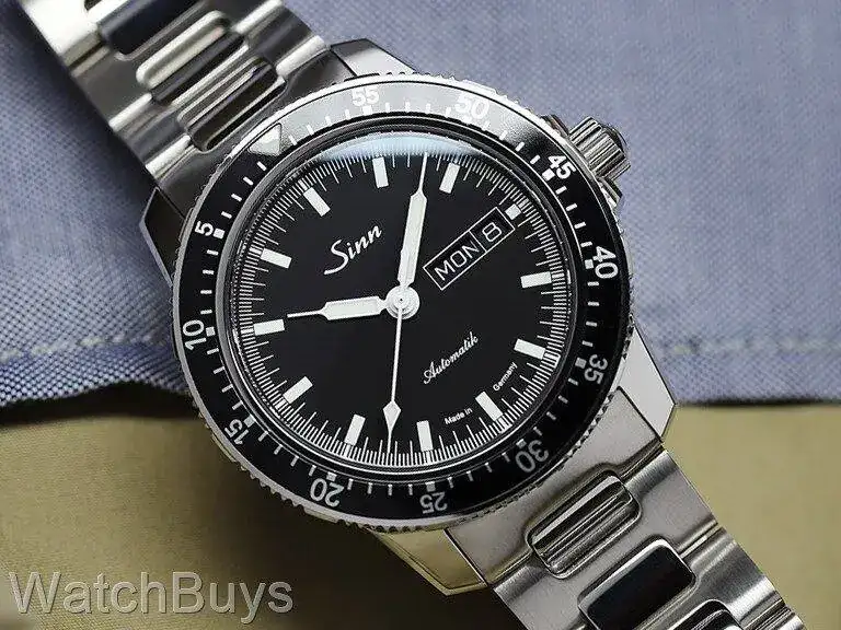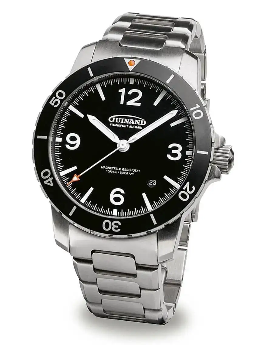 Otro alemán, similar al Sinn, pero menos conocido creo. Este es todo cepillado en comparación con el Sinn, con una estética aún más utilitaria, correa muy similar, mismo calibre... Pierde el dia de la semana paar ser más simétrico... Gana en anitmagnetismo a 1000 Gauss pierde en bisel de fricción en vez de con rodamientos o clicks.... No tengo claro el material ni la resistencia a los arañazos del bisel....