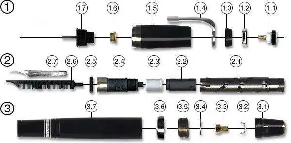 Hola, agradezco mucho este despiece porque tengo una Boheme a la que le quiero cambiar la pieza 2.4 porque tiene la anilla algo deteriorada, mi pregunta es si esta pieza se desenrosca de la 2.2 ya que la 2.3 es un tubo plástico que gira sobre el eje que cubre (eso me parece) y en caso de que la 2.4 entre a rosca con la 2.2, ¿conviene calentar con secador? (aire templado) para dilatar o desenroscamos directamente con alicates adecuados por supuesto (mordaza de silicona). Agradeceré mucho esta información, tambien me gustaría saber si las piezas 2.7 y 2.6 (plumín y alimentación), entran a presión, pretendo cambiar la pieza 2.4 pero mantener la alimentación y el plumín y por ultimo otra pregunta, este conjunto de la 2.7-2.6-2.5-2.4 y 2.3 es igual en la retráctil que en la de plumín fijo?.