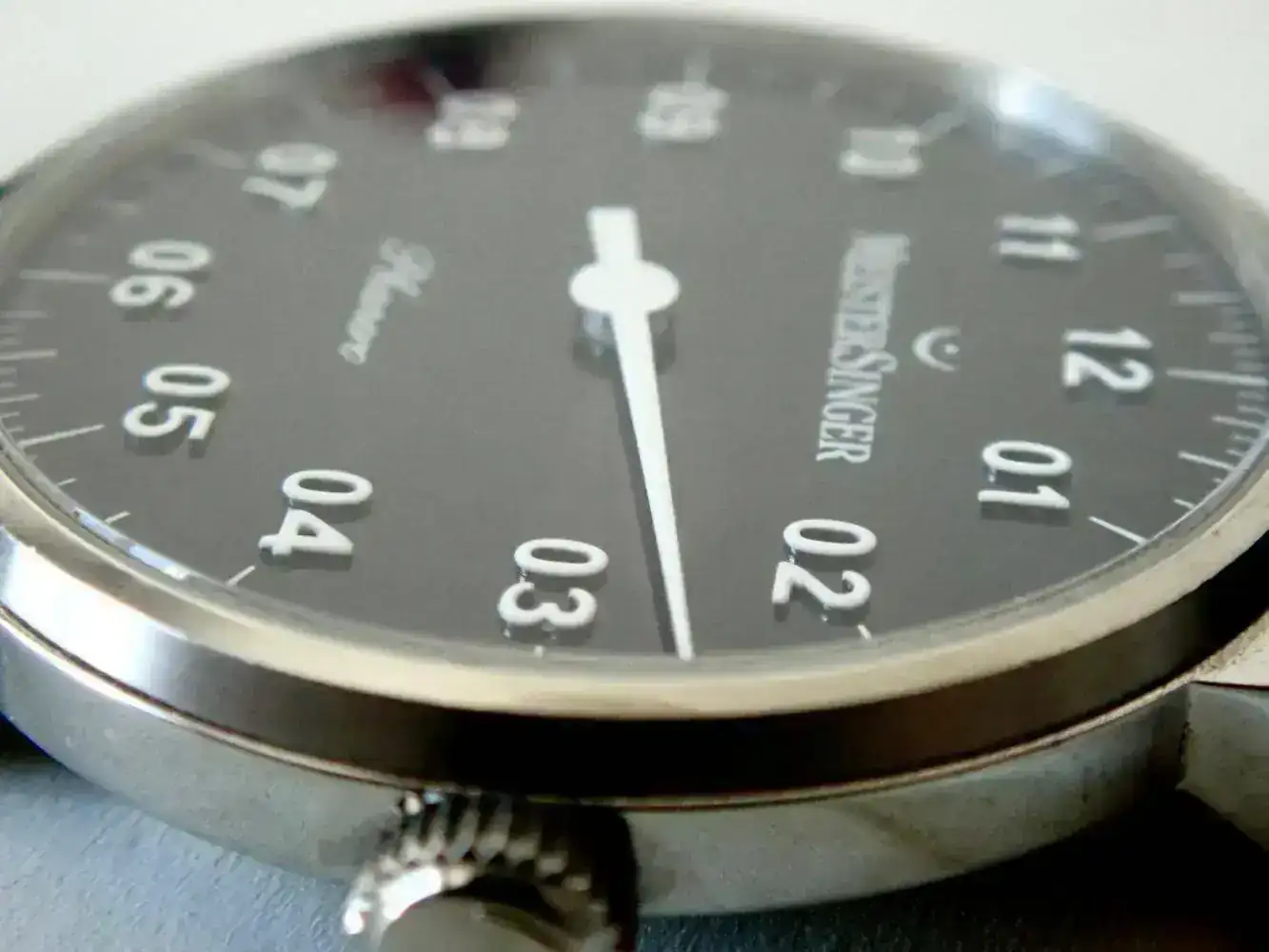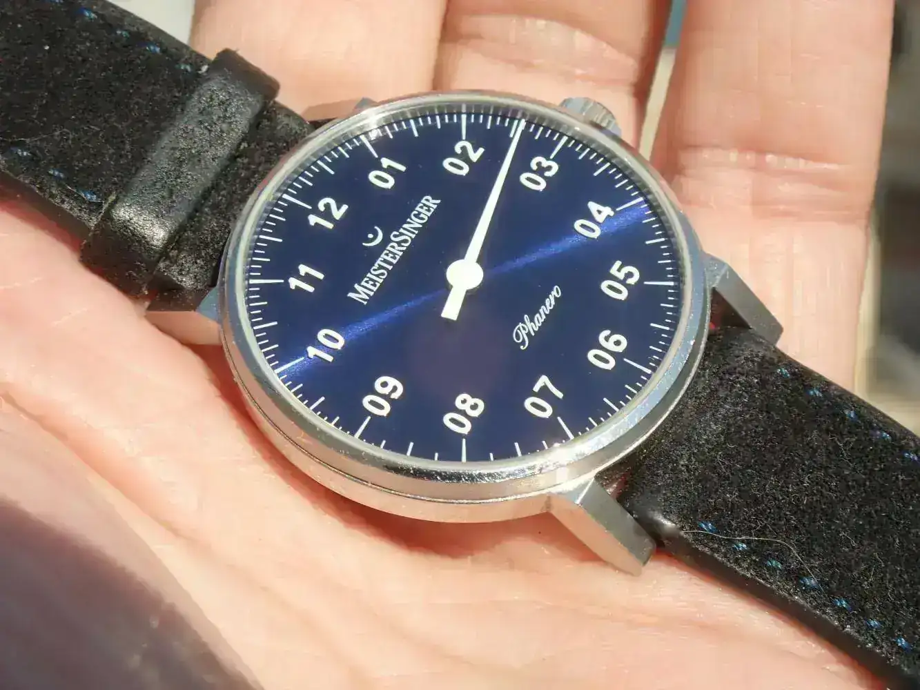 En casa somos bastante fans de Meistersinger y el concepto de reloj para un tiempo no estricto (monoaguja). En casa tenemos dos, el primero fue mi Perigraph 39mm grafito que ya no hacen (solo lo hacen en 43mm).