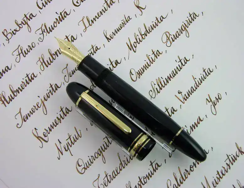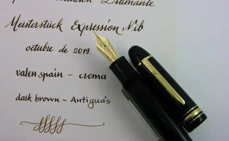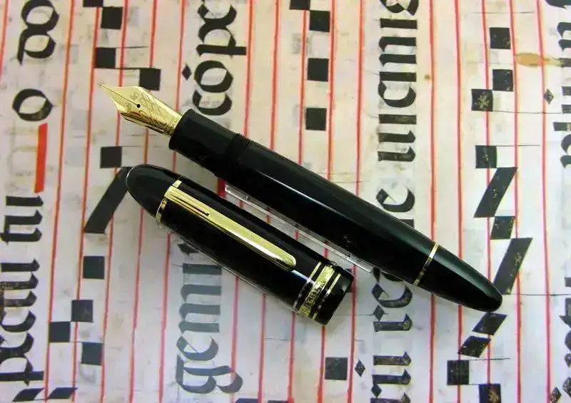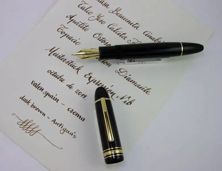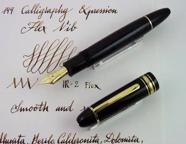 Aunque hay otras plumas históricas, la Meisterstück 149 es un “must have” como dicen los coleccionistas sofisticados. Es decir, si te gusta esto de las plumas, hay que tenerla. Pero para los que buscamos prestaciones caligráficas más allá del diseño y la ergonomía, las versiones modernas carecen de un plumín que se pueda considerar flexible. Ahora, que parece existir un renacimiento en el interés hacia la caligrafía, este tipo de plumines se ha vuelto un bien codiciado y buscado, haciendo exhumar y restaurar muchas viejas plumas sin apenas valor, pero equipadas con plumines de época de tipo flexible que las hacen deseables. Antes ese tipo de plumín no era raro, se podía elegir como algo normal entre la oferta de casi todo fabricante o marquista de estilográficas. Cualquier marca de prestigio ofrecía muchas opciones en este sentido (flexibilidad, anchura de trazo, orientación del plumín), cosa que ahora se ha perdido en su mayoría. No olvidemos que un plumín rígido es más fácil de utilizar, mucho más resistente en el uso diario, más suave de trazo y sobre todo, más fácil de fabricar que uno flexible.