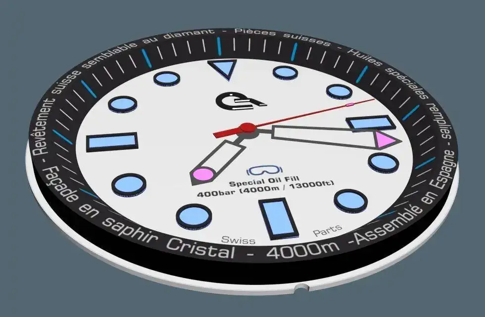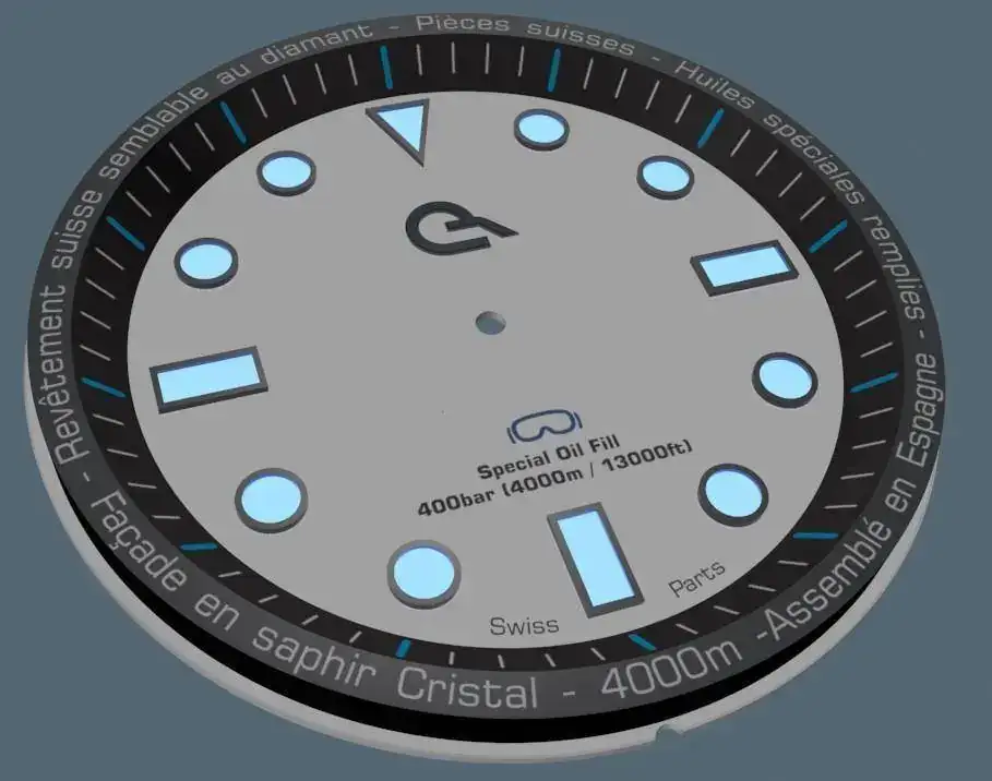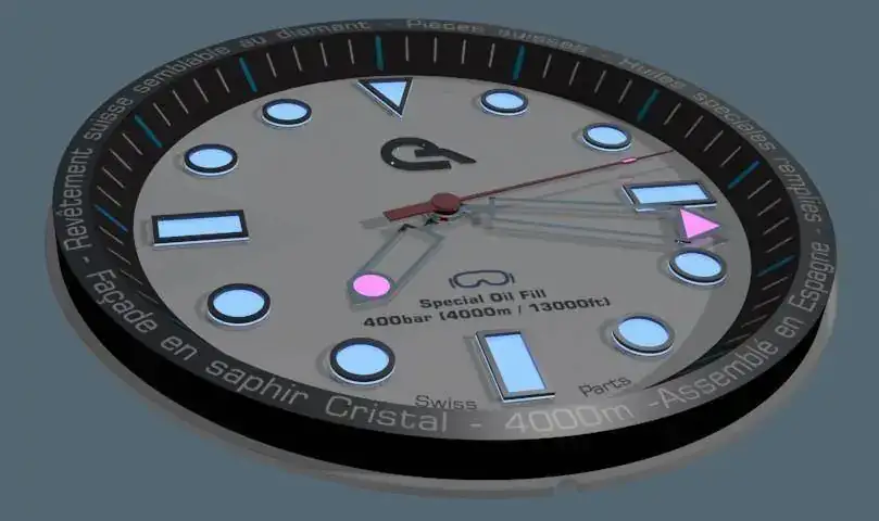 - Tanto el dial como el inserto están recubierto con un material luminiscente que se "cargue" con luz visible.