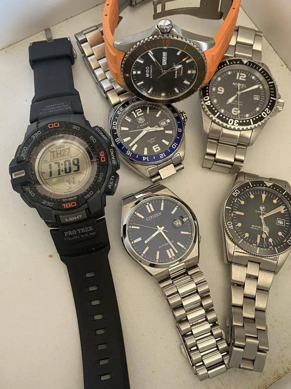 Lo de los relojes es un pasón, vais sobrados para el verano. Muy chulo ese Mido de titanio, siempre he estado tentado de hacerme con uno, sólo me ha echado para atrás que no tuviera bisel cerámico. Ya sé que hay un modelo nuevo con bisel cerámico, pero la combinación de la esfera gris arenada del modelo antiguo junto a los toques naranjas le dan un look genial.