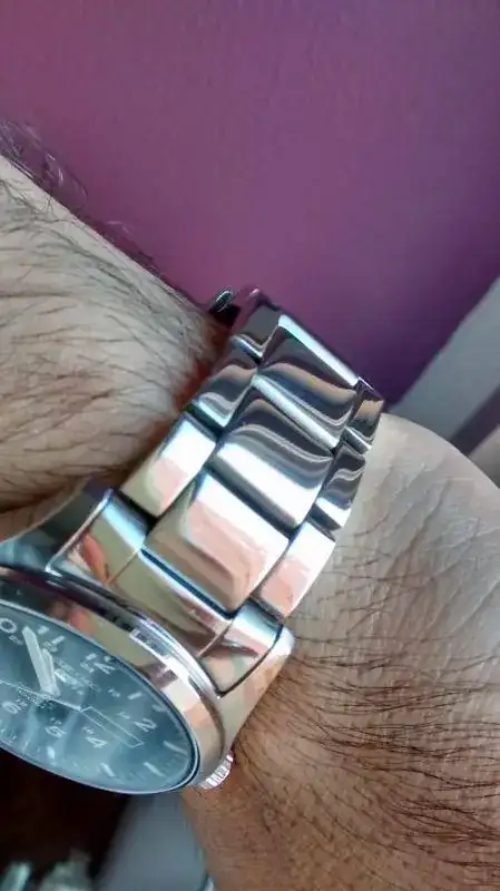 Y tengo que decir que funciona DE LUJO... me las ha quitado prácticamente todas y le he dado un brillo que no tenía ni cuando era nuevo, incluso tiene un tacto distinto, más "suave"... como si fuese un reloj de mayor categoría. Os pongo fotos de cómo quedó, la pena es no haberlas hecho del estado inicial para que se vea el cambio... unas junto a la ventana y otras bajo el flexo (se ve todo reflejado, jeje):