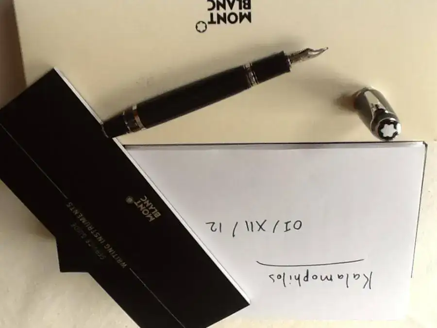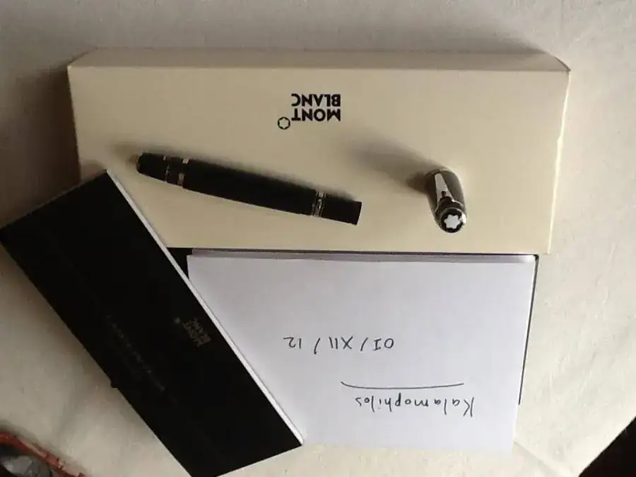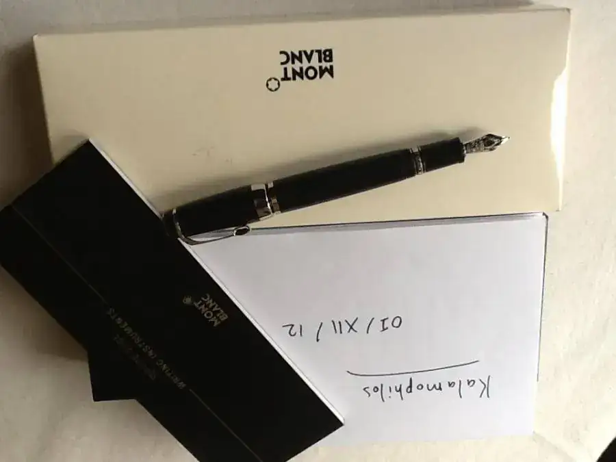 Estilográfica Montblanc Bohème Noir Platino de resina negra / platino con piedra negra en el clip. Tiene plumín retráctil de oro rodiado de 14 kts, punto F. Está como nueva, ya que la he usado poquísimo… y por eso sale.