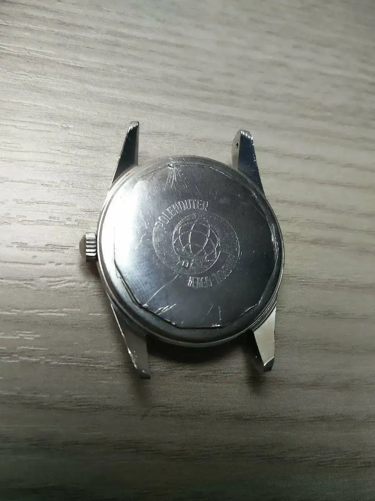 me dijo, si lo quieres es tuyo, te lo regalo, Daniel tiene muchas piezas importantes pero no tiene ningun Polerouter, mi primera reacción fue “No, no puedo aceptar” pero tras un rato me salío “te lo compro”, tras una discusión del tipo "no te lo vendo, te lo regalo", "no quiero que me lo regales que vale mucho"…Llegamos a un arreglo entre caballeros y el reloj pasó a mis manos. Qué conste que el arreglo ha sido muy bueno para mí, es un reloj que no me puedo permitir y menos en el estado en el que estaba este, a falta de ver las tripas, todo original, incluso la corona. Eso sí, la trasera rayada como tiene que ser…