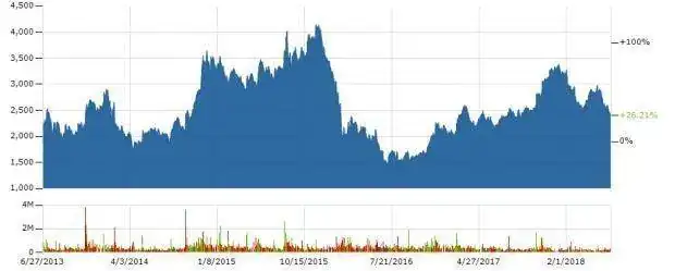 Al igual que las acciones de las industrias relojeras suizas, cayó con fuerza en el 2016 y luego ha ido recuperando durante el 2017, aunque sin llegar a los avalores anteriores.