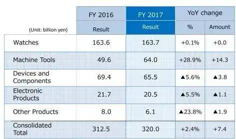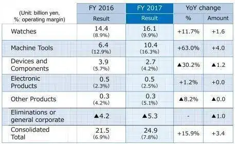 Los relojes suponen 16,1 billones de yen, unos 124 millones de euros, el 64,6% de su beneficio operativo total. Es su negocio más importante junto con el negocio de herramientas para maquinaria.