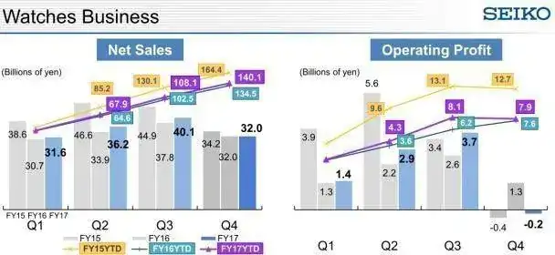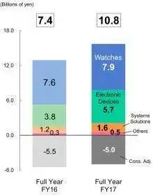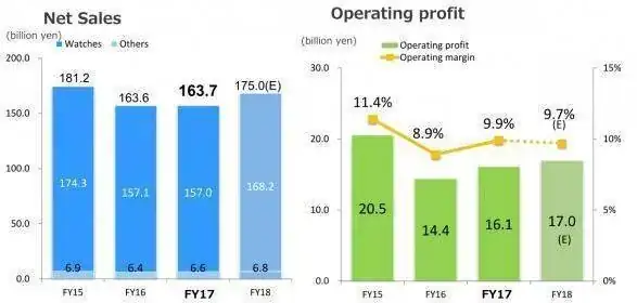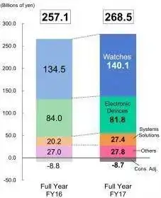 De relojes vendieron 163,7 billones de yen, unos 1.260 millones de euros, prácticamente igual que en 2016. Es decir, el negocio de relojes supone el 51% de sus ventas.