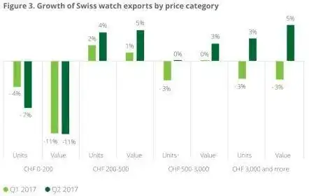 Por categoría de relojes se ve que crecen mejor los de mayor valor.
