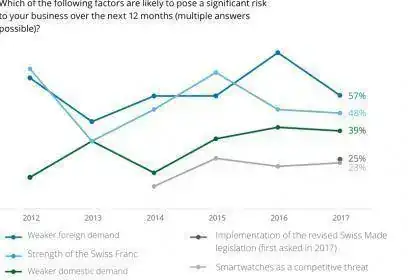 Respecto a los factores de riesgo para la industria, destacan el riesgo de una posible menor demanda exterior y el ratio de cambio de moneda del franco suizo frente a euro. No se ve como un riesgo alto a los smartwatches.
