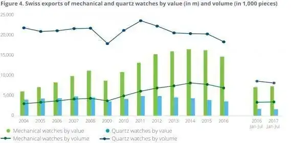 También se ve mejor evolución de los relojes mecánicos que los de cuarzo.