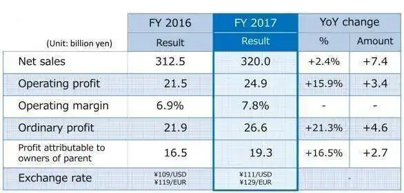Para el último año, las ventas han sido de 314,79 billones de yen, unos 2.423 millones de euros.