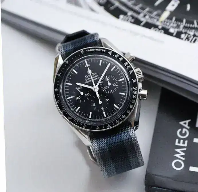 , siempre que se lo veo me recuerda a la versión de los modelos que fueron a la Luna, a mi me da muy buena sensación de calidad de nato la verdad, todos los acabados estupendos y sin sobresalir mucho los eslabones metálicos, aunque me guste más con su armis original si yo tuviera un moonwatch seguro que de vez en cuando le pondría un nato omega negra, le da un toque de sport muy especial para ciertos momentos o épocas del año (como el verano
