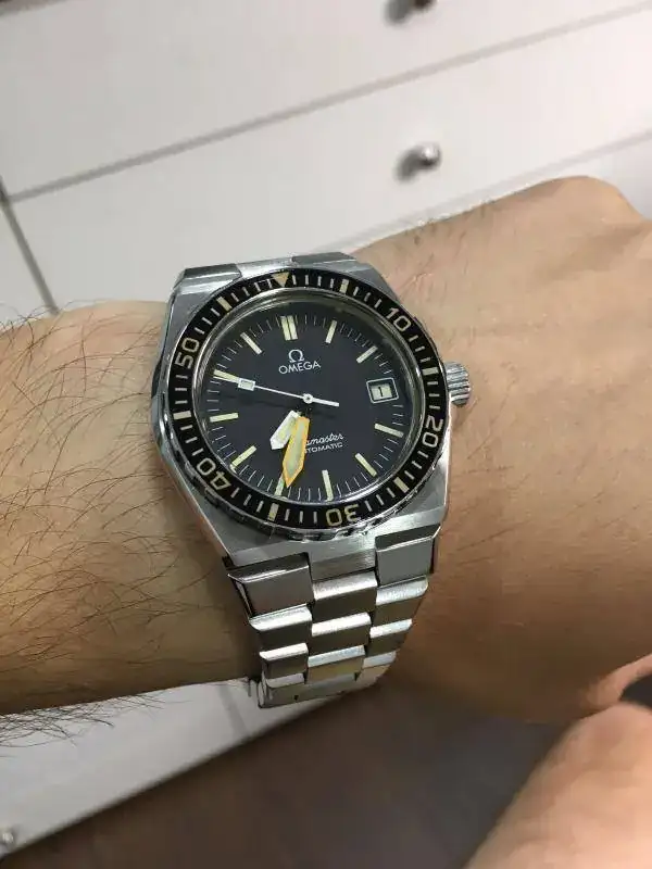 Me sorprende que para los años que tiene, su medida es muy actual, 38mm 39mm, con una sensación en muñeca mayor. La maquinaria fiable calibre 1010 omega.