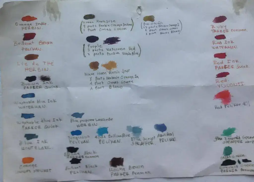Finalmente, mencionar que hay colores tan bien logrados y equilibrados que debería ser considerado herético alterarlos intencionalmente. En mi caso, el turquesa de Waterman, el azul real de Parker Quink, el Emerald de Parker Penmann, el matador o el oxblood de Diamine, el vert olive de Herbin, y algunos otros que ahora no me vienen a la cabeza, son perfectos, y no hay ninguna necesidad de modificarlos.